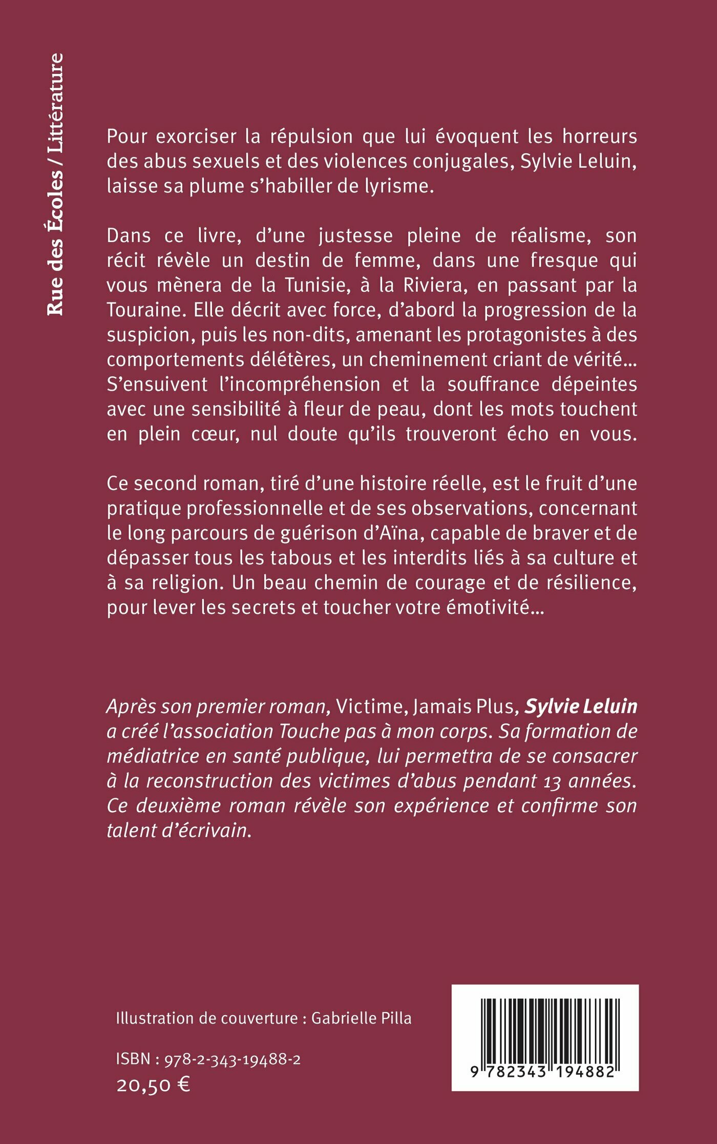 Ce second roman, tiré d’une histoire réelle, est le fruit d’une pratique professionnelle et de ses observations, concernant le long parcours de guérison d’Aïna, capable de braver et de dépasser tous les tabous et les interdits liés à sa culture et à sa religion. Un beau chemin de courage et de résilience, pour lever les secrets et toucher votre émotivité…