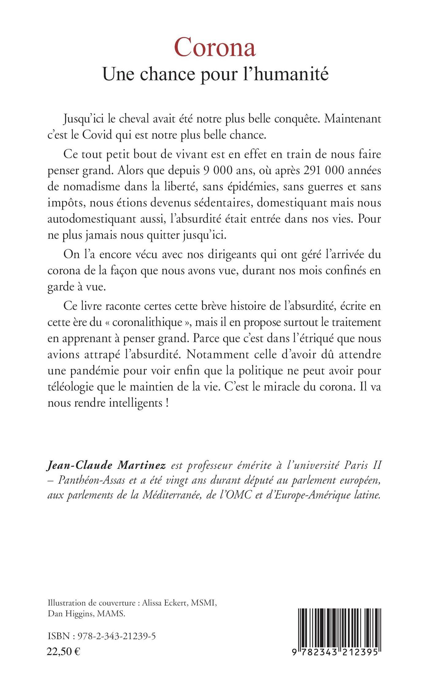 Alors que depuis 9 000 ans, où après 291 000 années de nomadisme dans la liberté, sans épidémies, sans guerres et sans impôts, nous étions devenus sédentaires, domestiquant mais nous autodomestiquant aussi, l'absurdité était entrée dans nos vies. Pour ne plus jamais nous quitter jusqu'ici. Ce livre raconte certes cette brève histoire de l'absurdité, écrite en cette ère du « coronalithique », mais il en propose surtout le traitement en apprenant à penser grand. Parce que c'est dans l'étriqué que nous avions attrapé l'absurdité. Notamment celle d'avoir dû attendre une pandémie pour voir enfin que la politique ne peut avoir pour téléologie que le maintien de la vie.
