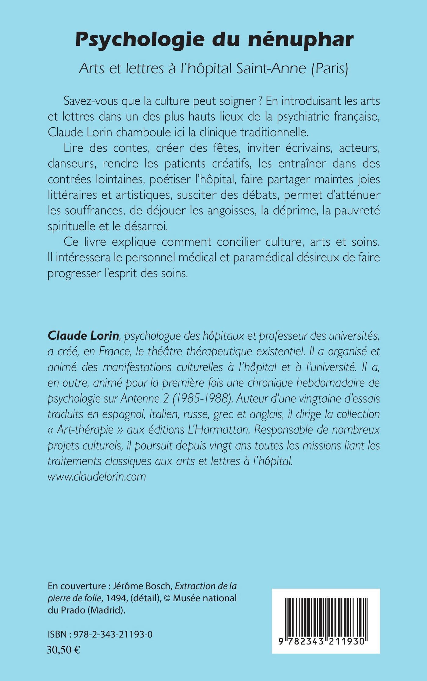 Savez-vous que la culture peut soigner ? En introduisant les arts et lettres dans un des plus hauts lieux de la psychiatrie française, Claude Lorin chamboule ici la clinique traditionnelle. Lire des contes, créer des fêtes, inviter écrivains, acteurs, danseurs, rendre les patients créatifs, les entraîner dans des contrées lointaines, poétiser l’hôpital, faire partager maintes joies littéraires et artistiques, susciter des débats, permet d’atténuer les souffrances, de déjouer les angoisses, la déprime, la pauvreté spirituelle et le désarroi. Ce livre explique comment concilier culture, arts et soins. Il intéressera le personnel médical et paramédical désireux de faire progresser l’esprit des soins.