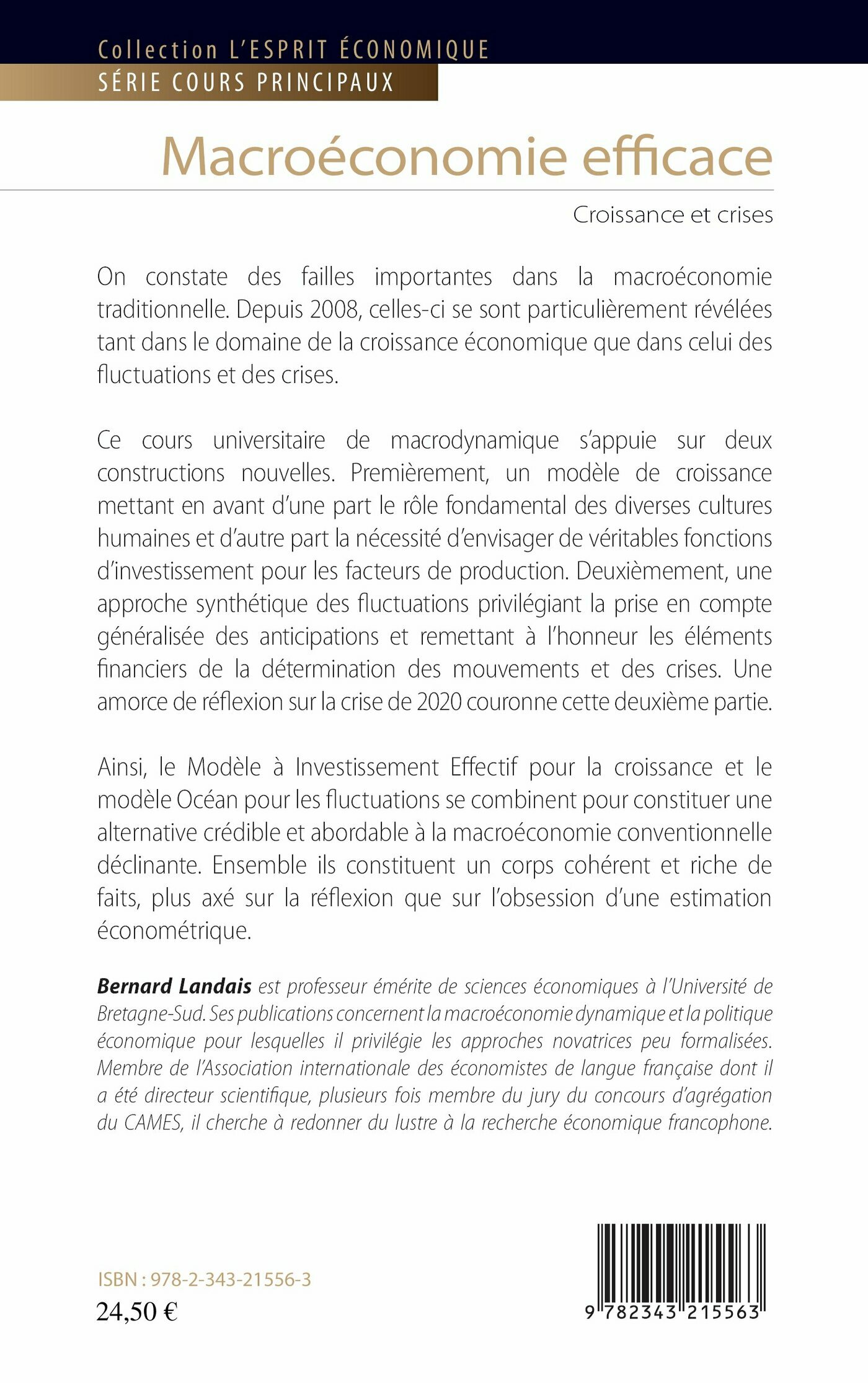 On constate des failles importantes dans la macroéconomie traditionnelle. Depuis 2008, elles se sont révélées dans les domaine de la croissance économique et des fluctuations et des crises. Ce cours universitaire de macrodynamique s’appuie sur deux constructions nouvelles. Premièrement, un modèle de croissance mettant en avant d’une part le rôle fondamental des diverses cultures humaines et d’autre part la nécessité d’envisager de véritables fonctions d’investissement pour les facteurs de production. Deuxièmement, une approche synthétique des fluctuations privilégiant la prise en compte généralisée des anticipations et remettant à l’honneur les éléments financiers de la détermination des mouvements et des crises. Une amorce de réflexion sur la crise de 2020 couronne cette deuxième partie. Ainsi, le Modèle à Investissement Effectif pour la croissance et le modèle Océan pour les fluctuations se combinent pour constituer une alternative à la macroéconomie conventionnelle.