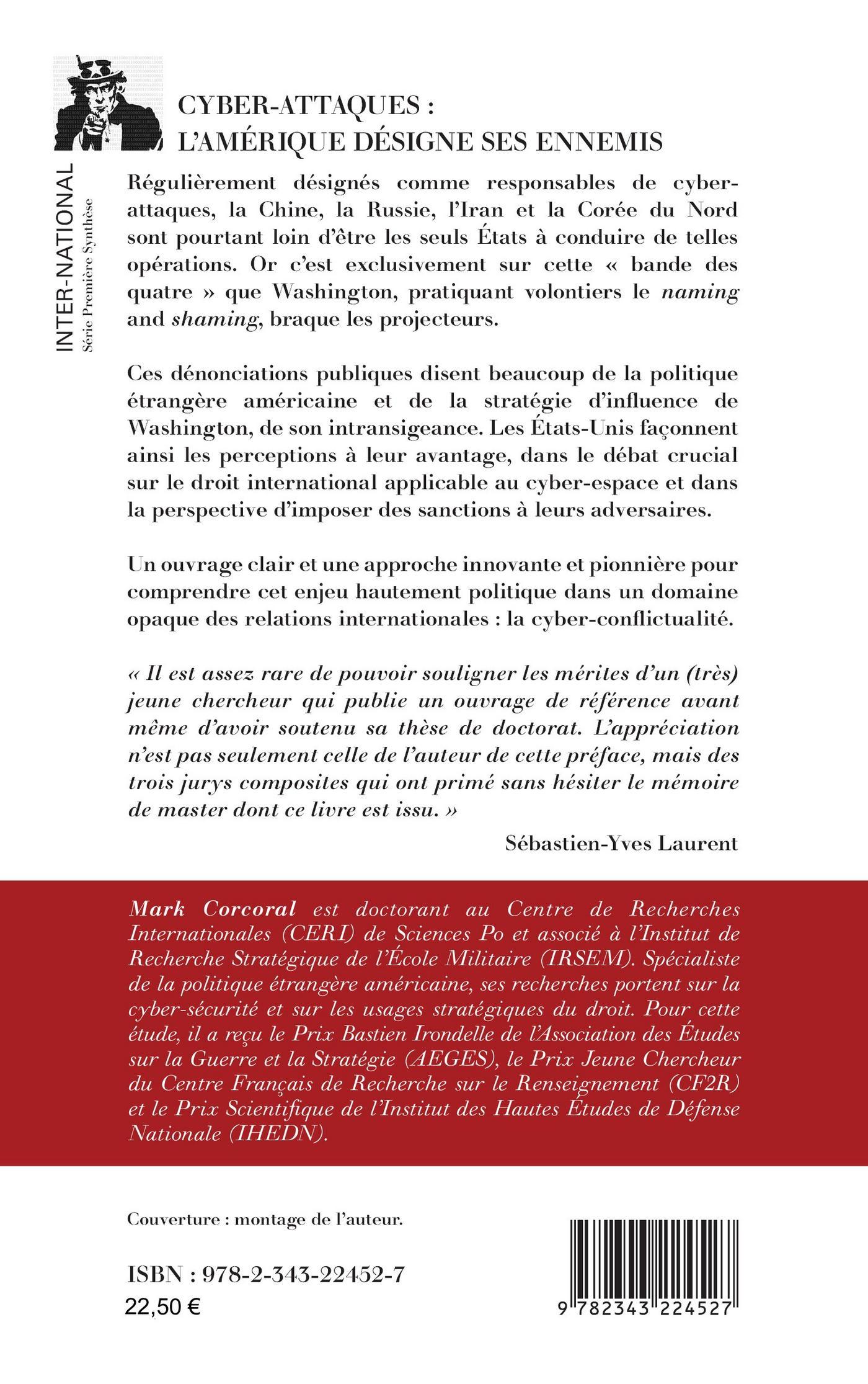 Régulièrement désignés comme responsables de cyberattaques, la Chine, la Russie, l’Iran et la Corée du Nord sont pourtant loin d’être les seuls États à conduire de telles opérations. Or c’est exclusivement sur cette "bande des quatre" que Washington, pratiquant volontiers le naming and shaming, braque les projecteurs. Ces dénonciations publiques disent beaucoup de la politique étrangère américaine et de la stratégie d’influence de Washington, de son intransigeance. Les États-Unis façonnent ainsi les perceptions à leur avantage, dans le débat crucial sur le droit international applicable au cyber-espace et dans la perspective d’imposer des sanctions à leurs adversaires. Un ouvrage clair et une approche innovante et pionnière pour comprendre cet enjeu hautement politique dans un domaine opaque des relations internationales : la cyber-conflictualité.