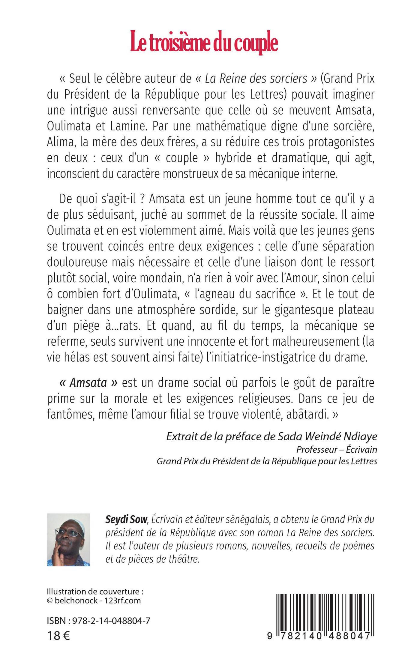 « Seul le célèbre auteur de « La Reine des sorciers » (Grand Prix du Président de la République pour les Lettres) pouvait imaginer une intrigue aussi renversante que celle où se meuvent Amsata, Oulimata et Lamine. Par une mathématique digne d'une sorcière, Alima, la mère des deux frères, a su réduire ces trois protagonistes en deux : ceux d'un « couple » hybride et dramatique, qui agit, inconscient du caractère monstrueux de sa mécanique interne. Ce livre est un drame social où parfois le goût de paraître prime sur la morale et les exigences religieuses. Dans ce jeu de fantômes, même l'amour filial se trouve violenté, abâtardi. » Extrait de la préface de Sada Weindé Ndiaye, Professeur - Écrivain
