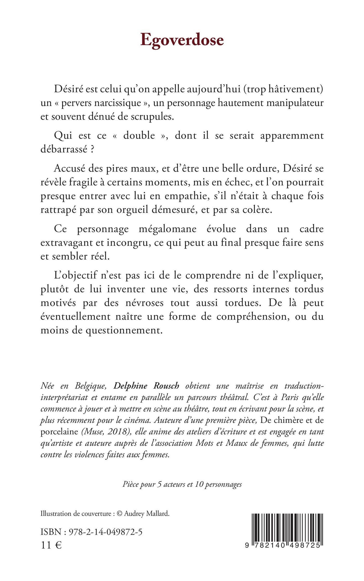 Désiré est celui qu'on appelle aujourd'hui (trop hâtivement) un « pervers narcissique », un personnage hautement manipulateur et souvent dénué de scrupules. Qui est ce « double », dont il se serait apparemment débarrassé ? Accusé des pires maux, et d'être une belle ordure, Désiré se révèle fragile à certains moments, mis en échec, et l'on pourrait presque entrer avec lui en empathie, s'il n'était à chaque fois rattrapé par son orgueil démesuré, et par sa colère. Ce personnage mégalomane évolue dans un cadre extravagant et incongru, ce qui peut au final presque faire sens et sembler réel. L'objectif n'est pas ici de le comprendre ni de l'expliquer, plutôt de lui inventer une vie, des ressorts internes tordus motivés par des névroses tout aussi tordues. De là peut éventuellement naître une forme de compréhension, ou du moins de questionnement. Pièce pour 5 acteurs et 10 personnages.