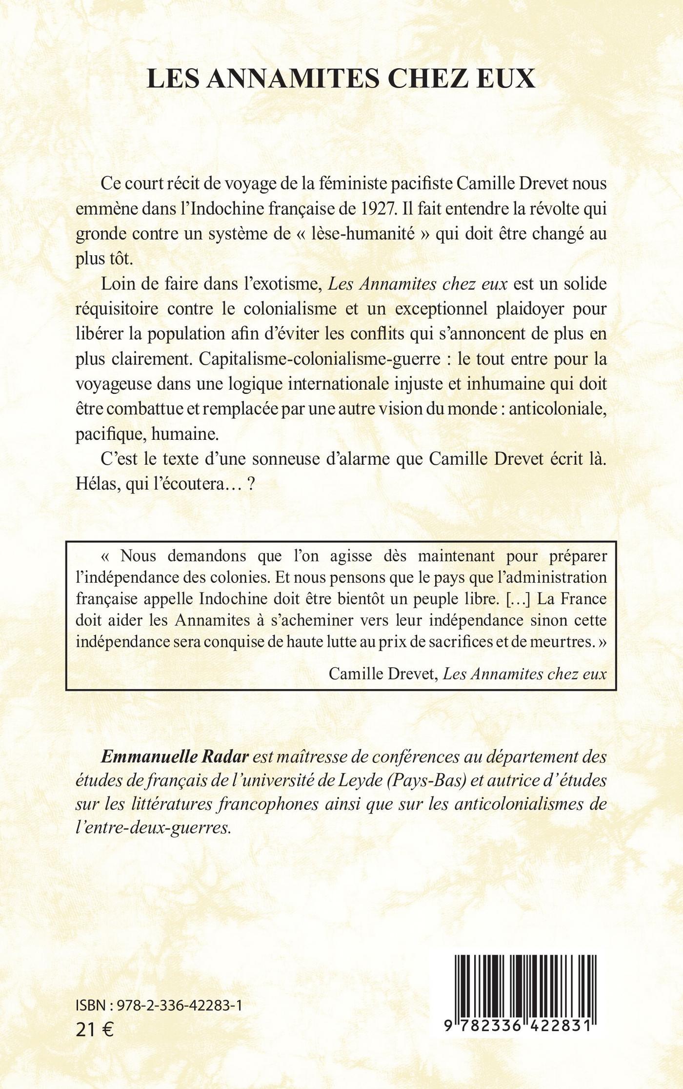 Loin de faire dans l’exotisme, Les Annamites chez eux est un solide réquisitoire contre le colonialisme et un exceptionnel plaidoyer pour libérer la population afin d’éviter les conflits qui s’annoncent de plus en plus clairement. Capitalisme-colonialisme-guerre : le tout entre pour la voyageuse dans une logique internationale injuste et inhumaine qui doit être combattue et remplacée par une autre vision du monde : anticoloniale, pacifique, humaine.