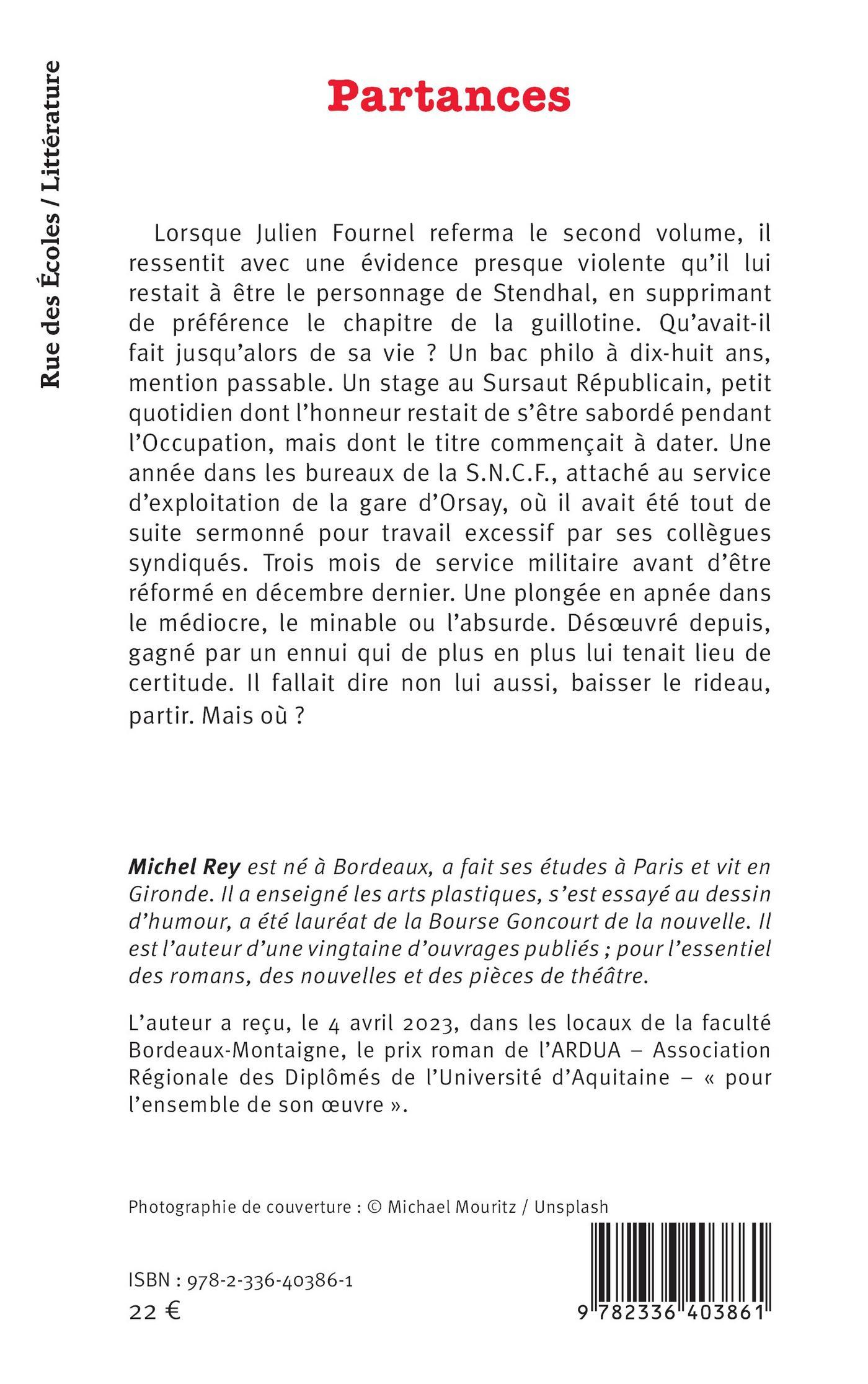 Lorsque Julien Fournel referma le second volume, il ressentit avec une évidence presque violente qu’il lui restait à être le personnage de Stendhal, en supprimant de préférence le chapitre de la guillotine. Qu’avait-il fait jusqu’alors de sa vie ? Un bac philo à dix-huit ans, mention passable. Un stage au Sursaut Républicain, petit quotidien dont l’honneur restait de s’être sabordé pendant l’Occupation, mais dont le titre commençait à dater. Une année dans les bureaux de la S.N.C.F., attaché au service d’exploitation de la gare d’Orsay, où il avait été tout de suite sermonné pour travail excessif par ses collègues syndiqués. Trois mois de service militaire avant d’être réformé en décembre dernier. Une plongée en apnée dans le médiocre, le minable ou l’absurde. Désœuvré depuis, gagné par un ennui qui de plus en plus lui tenait lieu de certitude. Il fallait dire non lui aussi, baisser le rideau, partir. Mais où ?