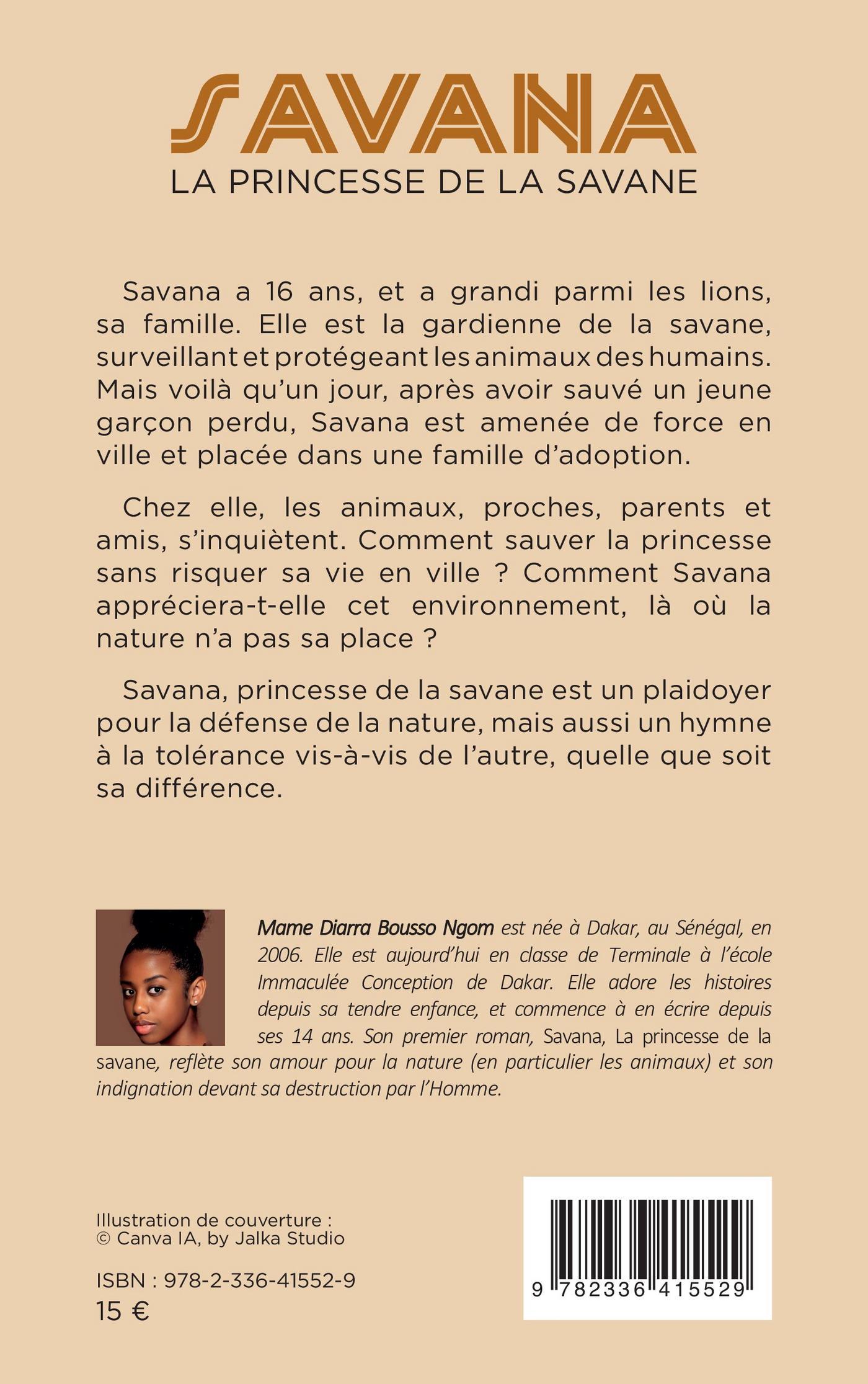 Savana a 16 ans, et a grandi parmi les lions, sa famille. Elle est la gardienne de la savane, surveillant et protégeant les animaux des humains. Mais voilà qu’un jour, après avoir sauvé un jeune garçon perdu, Savana est amenée de force en ville et placée dans une famille d’adoption. Chez elle, les animaux, proches, parents et amis, s’inquiètent. Comment sauver la princesse sans risquer sa vie en ville ? Comment Savana appréciera-t-elle cet environnement, là où la nature n’a pas sa place ? Savana, princesse de la savane est un plaidoyer pour la défense de la nature, mais aussi un hymne à la tolérance vis-à-vis de l’autre, quelle que soit sa différence.