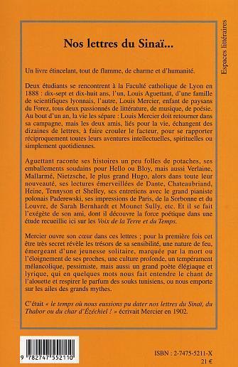 Deux étudiants se rencontrent à la faculté catholique en 1888 : dix-sept et dix-huit ans, l'un, Louis Aguettant, d'une famille de scientifiques lyonnais, l'autre Louis Mercier, enfant de paysans du Forez, tous deux passionnés de littérature, de musique, de poésie. Au bout d'un an, la vie les sépare : Louis Mercier doit retourner dans sa campagne, mais les deux amis, liés pour la vie, échangent des dizaines de lettres. Aguettant raconte ses histoires un peu folles de potaches, ses emballements soudains pour Hello ou Bloy, mais aussi Verlaine, Mallarmé, Nietzsche, le plus grand Hugo, ses entretiens avec le grand pianiste polonaisPaderewski, ses impressions de Paris, de la Sorbonne tandis que Mercier révèle les trésors de sa sensibilité, et une culture profonde.