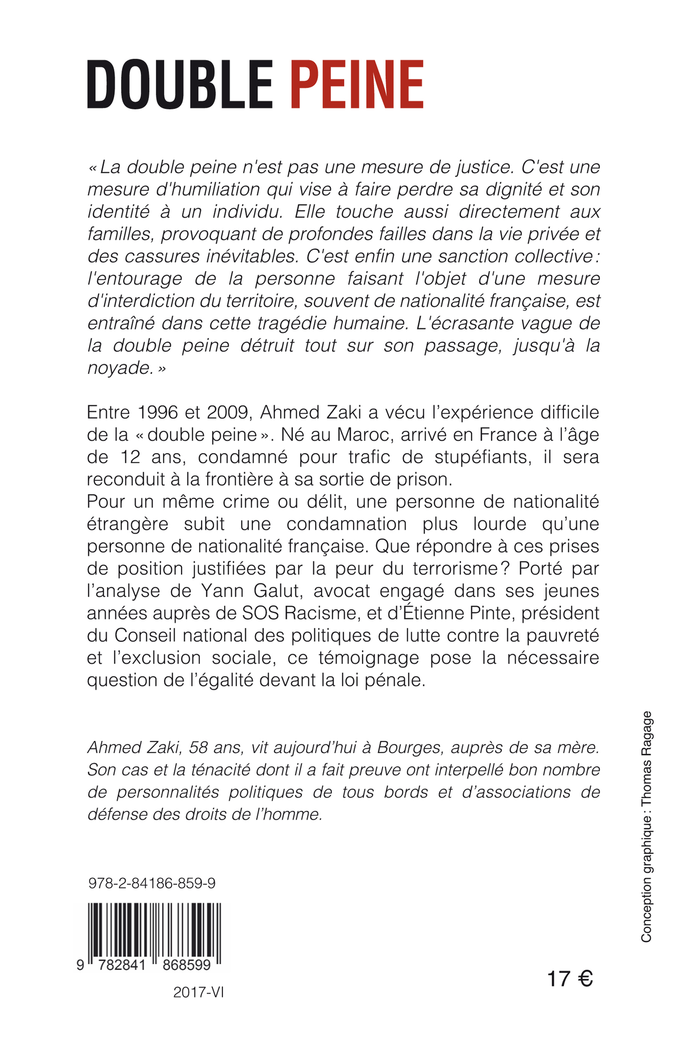 Entre 1996 et 2009, Ahmed Zaki a vécu l’expérience difficile de la «double peine». Né au Maroc, arrivé en France à l’âge de 12 ans, condamné pour trafic de stupéfiants, il sera reconduit à la frontière à sa sortie de prison.