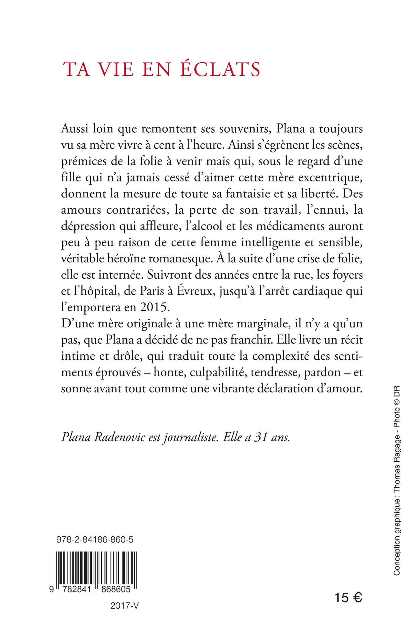 D’une mère originale à une mère marginale, il n’y a qu’un pas, que Plana a décidé de ne pas franchir. Elle livre un récit intime et drôle, qui traduit toute la complexité des sentiments éprouvés – honte, culpabilité, tendresse, pardon – et sonne avant tout comme une vibrante déclaration d’amour.