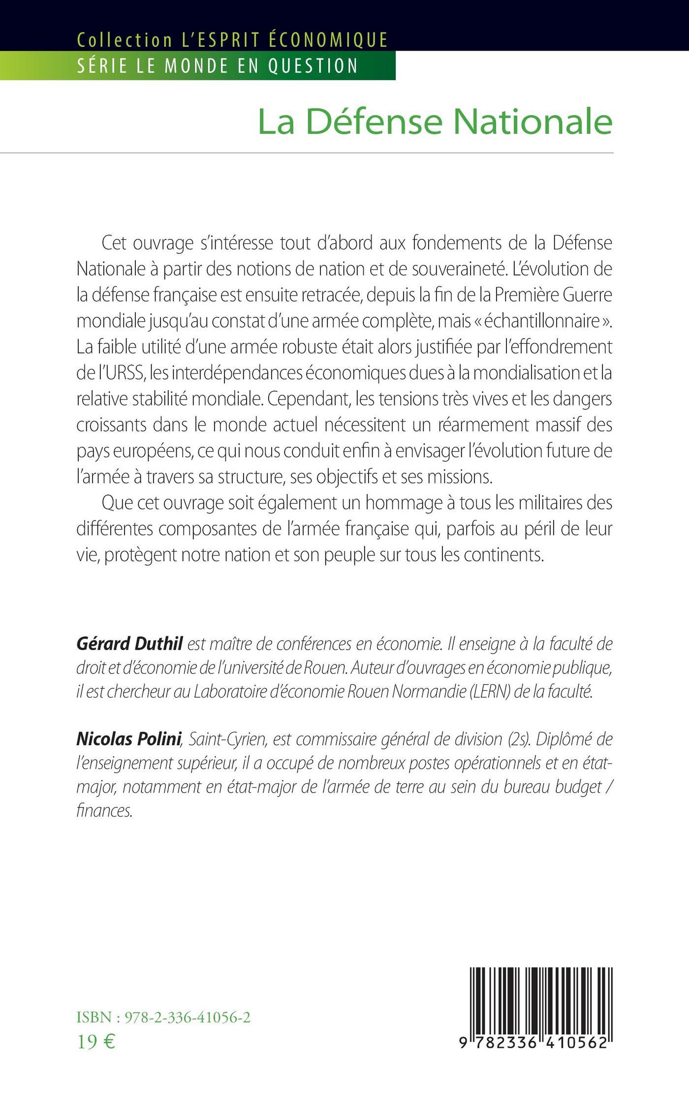 Cet ouvrage s’intéresse tout d’abord aux fondements de la Défense Nationale à partir des notions de nation et de souveraineté. L’évolution de la défense française est ensuite retracée, depuis la fin de la Première Guerre mondiale jusqu’au constat d’une armée complète, mais « échantillonnaire ». La faible utilité d’une armée robuste était alors justifiée par l’effondrement de l’URSS, les interdépendances économiques dues à la mondialisation et la relative stabilité mondiale. Cependant, les tensions très vives et les dangers croissants dans le monde actuel nécessitent un réarmement massif des pays européens, ce qui nous conduit enfin à envisager l’évolution future de l’armée à travers sa structure, ses objectifs et ses missions. Que cet ouvrage soit également un hommage à tous les militaires des différentes composantes de l’armée française qui, parfois au péril de leur vie, protègent notre nation et son peuple sur tous les continents.