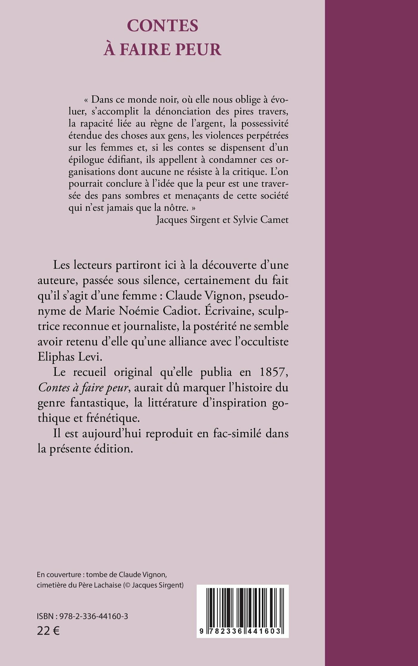 Le recueil original qu’elle publia en 1857, Contes à faire peur, aurait dû marquer l’histoire du genre fantastique, la littérature d’inspiration gothique et frénétique.