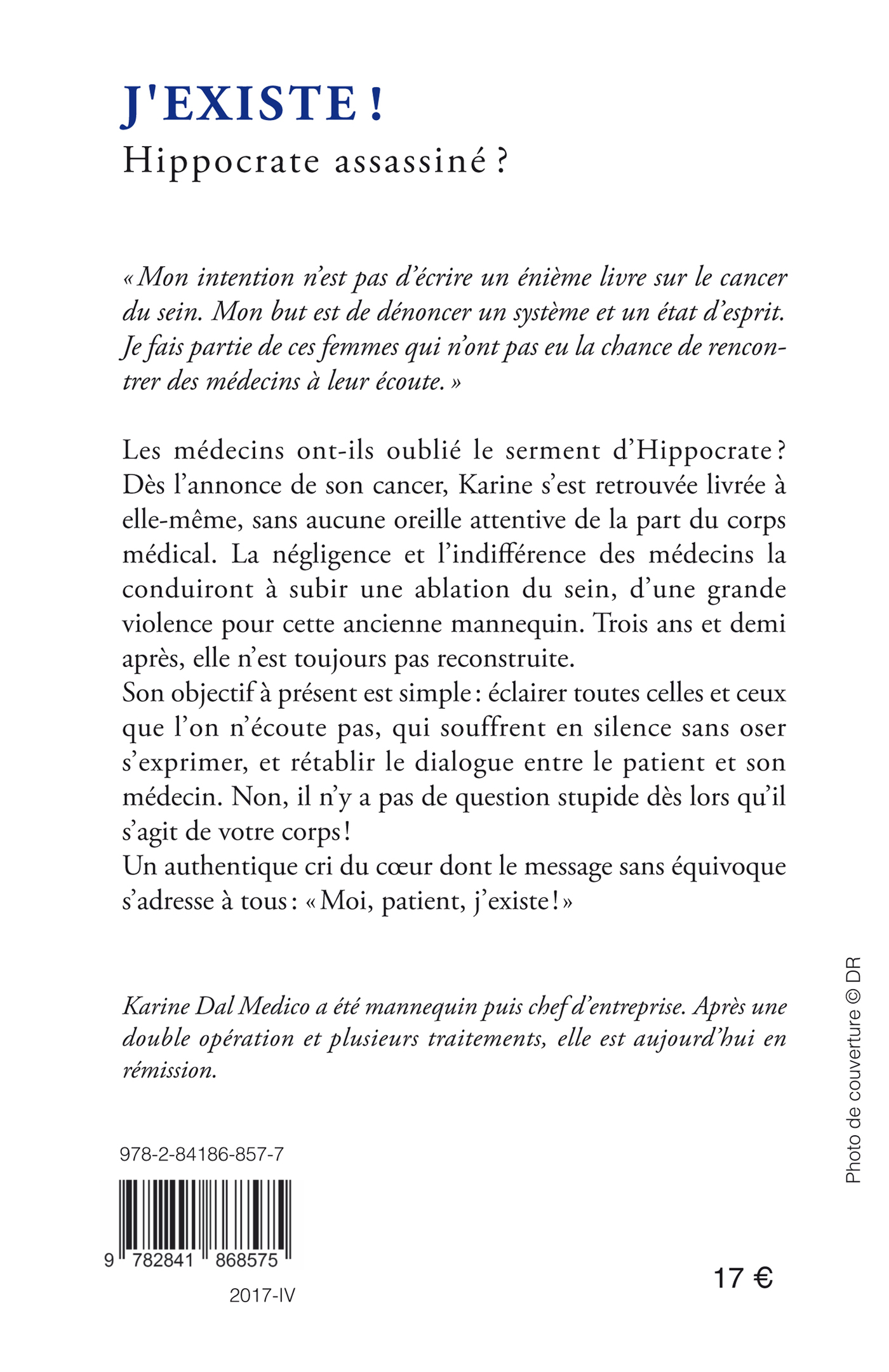 Les médecins ont-ils oublié le serment d’Hippocrate ? Dès l’annonce de son cancer, Karine s’est retrouvée livrée à elle-même, sans aucune oreille attentive de la part du corps médical. la négligence et l’indifférence des médecins la conduiront à subir une ablation du sein, d’une grande