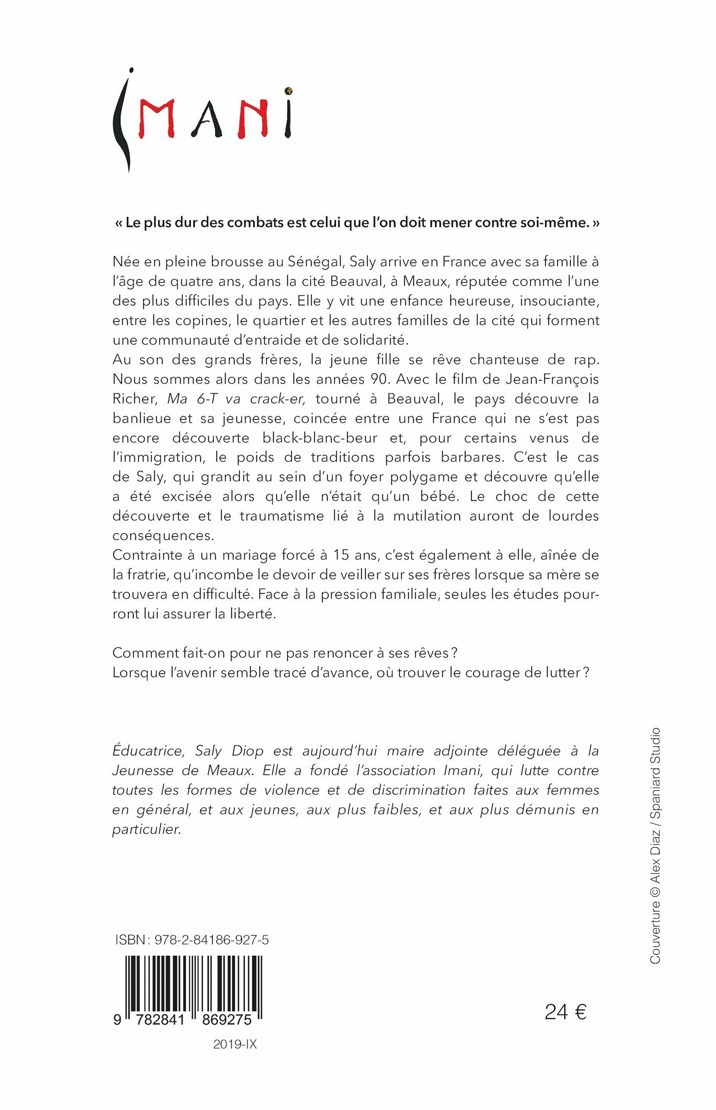 Née en pleine brousse au Sénégal, Saly arrive en France avec sa famille à l’âge de quatre ans, dans la cité Beauval, à Meaux, réputée comme l’une des plus difficiles du pays. Elle y vit une enfance heureuse, insouciante, entre les copines, le quartier et les autres familles de la cité qui forment