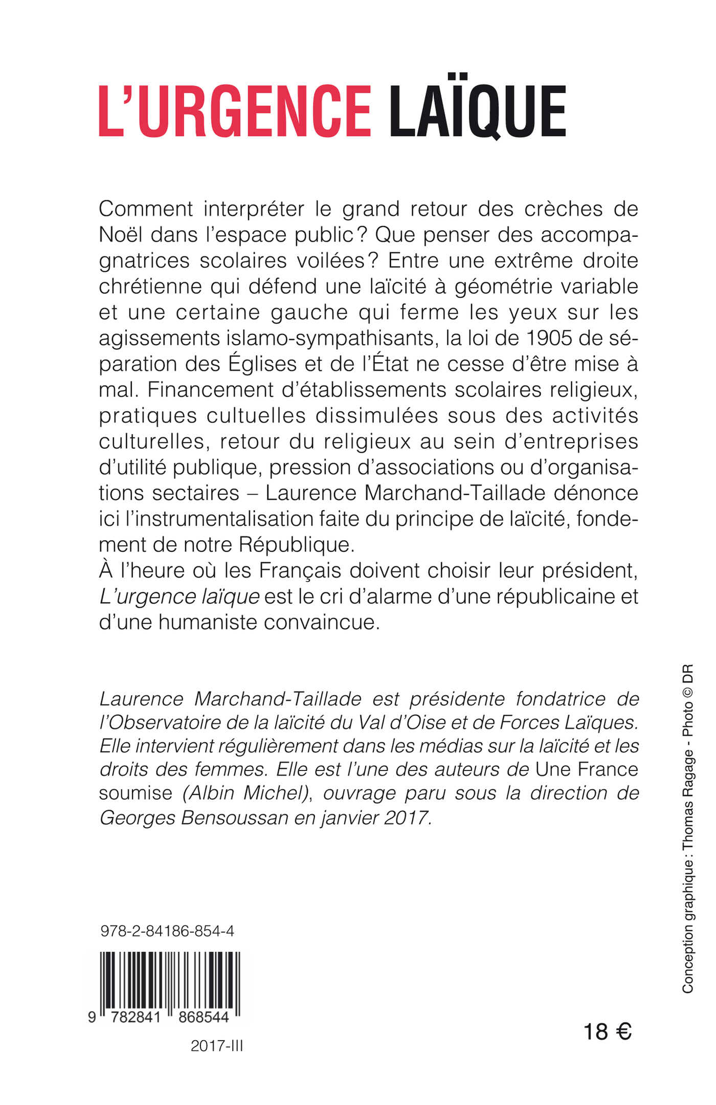 À l’heure où les Français doivent choisir leur président, L’urgence laïque est le cri d’alarme d’une républicaine et d’une humaniste convaincue.