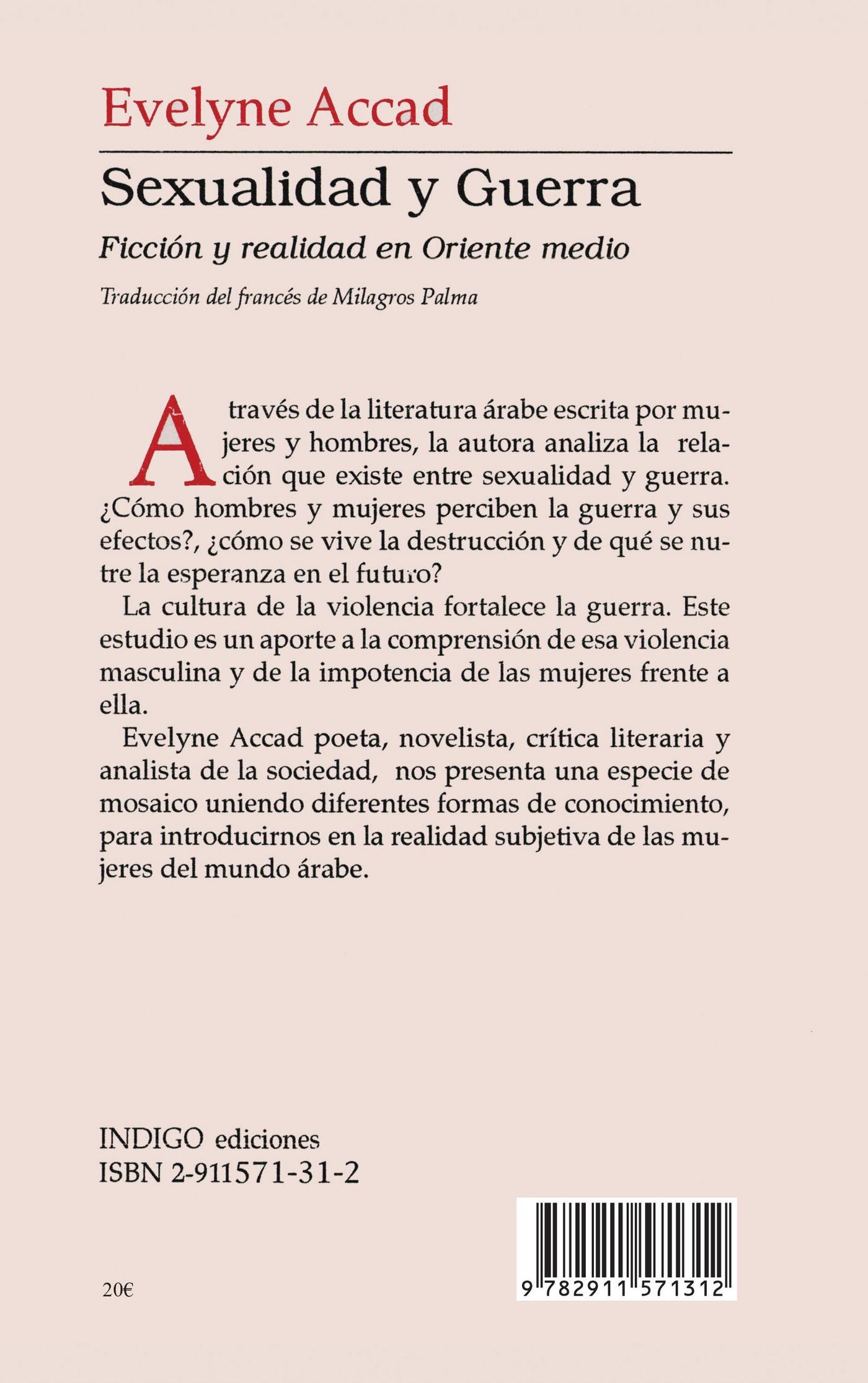 Evelyne Accad nos muestra la vida de las mujeres y la guerra del Líbano. La guerra se nutre de un imaginario común basado en una cultura violenta. Es en este sentido que este estudio puede aportar a la comprensión de la violencia masculina y la impotencia de las mujeres frente a ella.