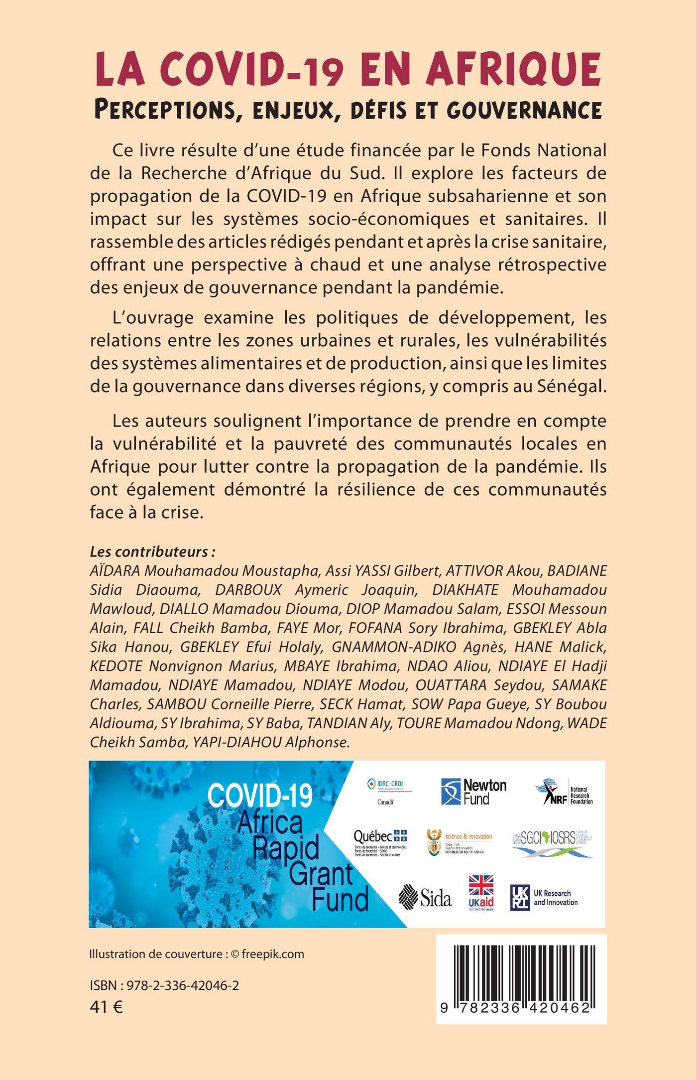 Ce livre résulte d’une étude financée par le Fonds National de la Recherche d’Afrique du Sud. Il explore les facteurs de propagation de la COVID-19 en Afrique subsaharienne et son impact sur les systèmes socio-économiques et sanitaires. Il rassemble des articles rédigés pendant et après la crise sanitaire, offrant une perspective à chaud et une analyse rétrospective des enjeux de gouvernance pendant la pandémie. L’ouvrage examine les politiques de développement, les relations entre les zones urbaines et rurales, les vulnérabilités des systèmes alimentaires et de production, ainsi que les limites de la gouvernance dans diverses régions, y compris au Sénégal. Les auteurs soulignent l’importance de prendre en compte la vulnérabilité et la pauvreté des communautés locales en Afrique pour lutter contre la propagation de la pandémie. Ils ont également démontré la résilience de ces communautés face à la crise.