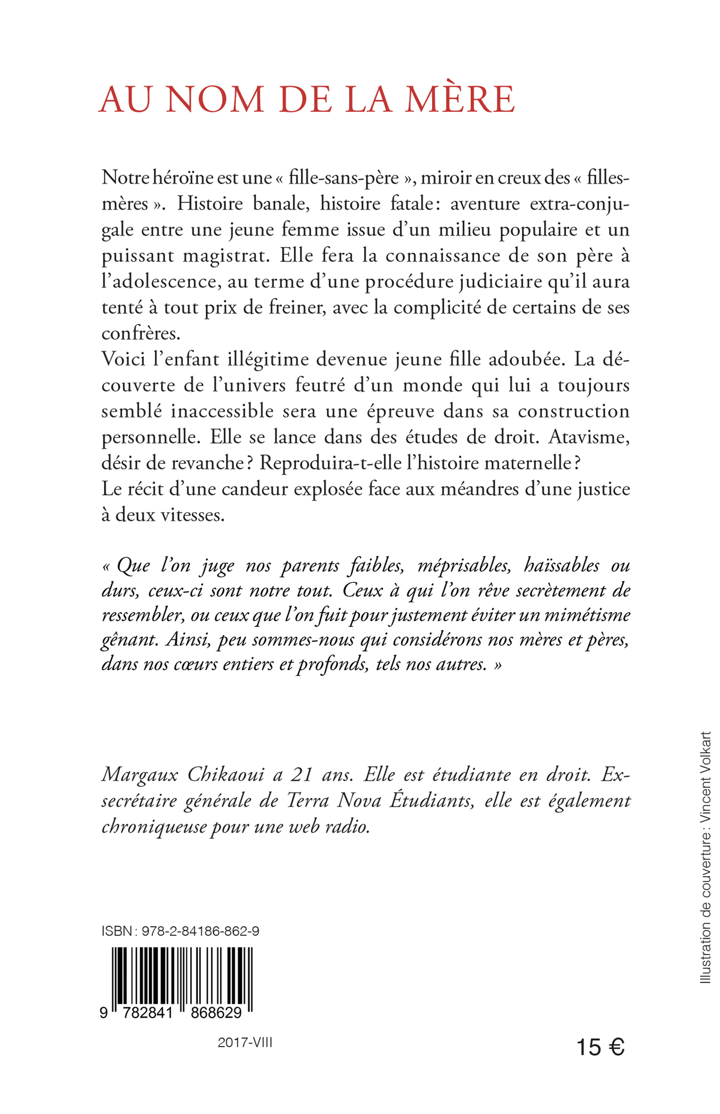 Voici l’enfant illégitime devenue jeune fille adoubée. La découverte de l’univers feutré d’un monde qui lui a toujours semblé inaccessible sera une épreuve dans sa construction personnelle. Elle se lance dans des études de droit. Atavisme, désir de revanche ? Reproduira-t-elle l’histoire maternelle ? Le récit d’une candeur explosée face aux méandres d’une justice à deux vitesses.