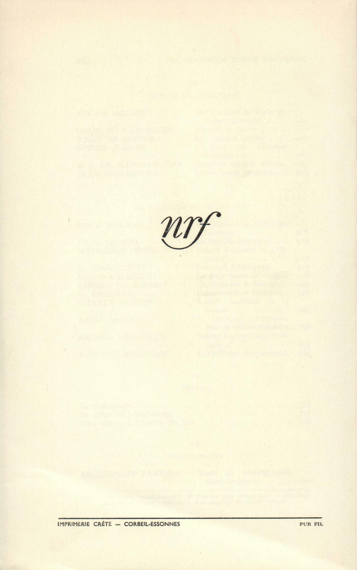 Présentation de Valery Larbaud : Saint-John Perse, Larbaud ou L'honneur littéraireJules Supervielle, Scčne secrčteJean Cocteau, Un Agent secret des LettresJean Schlumberger, Le Vaisseau de ThéséeMarcel Arland, Vers le pays d'AllenL'homme : Francis Jourdain, RemarquesMaurice Constantin-Weyer, Dans l'intimité de Valery LarbaudPierre Mahillon, Valery Larbaud et le protestantismeTh. Alajouanine, Valbois et Valery LarbaudRobert Mallet, Le grand EnfantMaurice Martin du Gard, RencontresRencontres : Claude Roy, Je voudrais remercier Valery LarbaudJean Follain, Rencontre avec Valery LarbaudJacques Brenner, Au nom de Larbaud...Michel Breitman, Larbaud ŕ quinze ansDominique Fernandez, Le Souterrain de LarbaudHenri Thomas, Le Colporteur de SarregueminesAutour de l'écrivain : Roger Nimier, Notes sur le style de Valery LarbaudGeorges Lambrichs, L'Amateur fidčleRené de Solier, Les Sirčnes latinesRoger Judrin, L'auteur de Fermina MarquezAndré Pieyre de Mandiargues, Dans un certain miroirJean d' Ormesson, Valery Larbaud ou Le voyageur immobileLe voyageur en divers pays : Paul Morand, Une suite ŕ la Lettre de Lisbonne de Valery LarbaudPaulo Osorio, Un ami du PortugalMathilde Pomčs, Valery Larbaud et l'EspagneG. B. Angioletti, Larbaud l'EuropéenGianna Manzini, Le plus jeune de tous Libero de Libero, Un Romain ŕ RomeGiacomo Antonini, Barnabooth et FlorenceCharly Guyot, Valery Larbaud et la SuisseRené Lalou, Valery Larbaud, Ťintroducteur et intermédiaireťLionel Bedouret, Larbaud et l'AmériqueVincent Milligan, L'Amérique de LarbaudTextes : Valery Larbaud, Le Sémaphore - Le cur de l'Angleterre - Lettres ŕ Charles du BosBibliographie : Jacqueline Famerie, Essai de bibliographie chronologique de Valery Larbaud