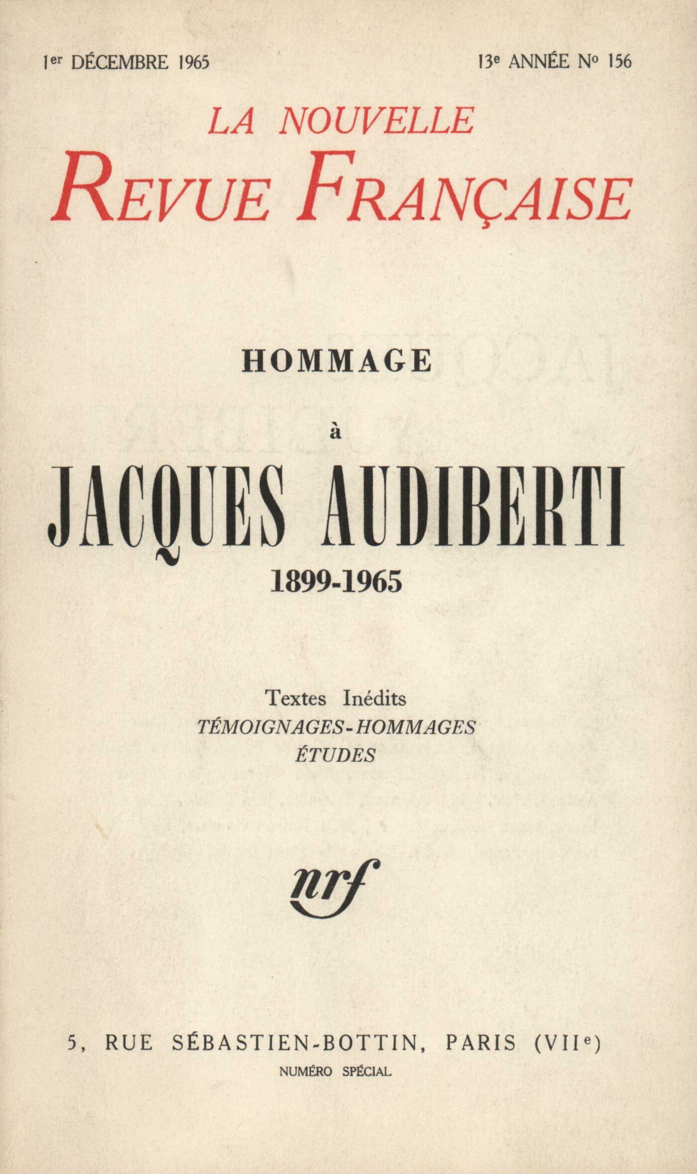 Textes inédits : Jacques Audiberti, Le dernier počme - L'Opéra du Monde - Le Sconse - Lettres ŕ Ludmila Vlasto - J'ai fini ma semaineTémoignages : Monique Pantel, Comme on ferme les voletsGaston Bonheur, L'unique spectateurPierre Besse, Jacques Audiberti au châteauMaurice Fombeure, Souvenirs et propos sur AudibertiAndré Deslandes, Un abhumaniste trčs humainCamille Bryen, Audiberti permanentJacques Baratier, Avec AudibertiGaston Bouthoul, Le rempart d'AudibertiHommages : Paul Morand, Ex-voto AudibertiJean Cassou, Au temps de L'Empire et la TrappeJean Follain, Présence d'AudibertiAndré Pieyre de Mandiargues, Ŕ force de motsRobert Kanters, Un rassembleurAlain Bosquet, Trois AudibertiJacques Chessex, Qu'est devenu Jacques mort?Études : André Dhôtel, La chanson d'AudibertiHenry Amer, Audiberti toujoursRoger Judrin, Portrait de DamaseFranz Hellens, Simultanéité et vision pluralisteGeorges Vitaly, L'uvre généreuse de Jacques AudibertiRobert Abirached, Le monde comme représentationAlain Clerval, Sur le théâtre d'AudibertiJean Duvignaud, Un cinéaste sans cinéma Étiemble, Lettre au vieux compagnon de route