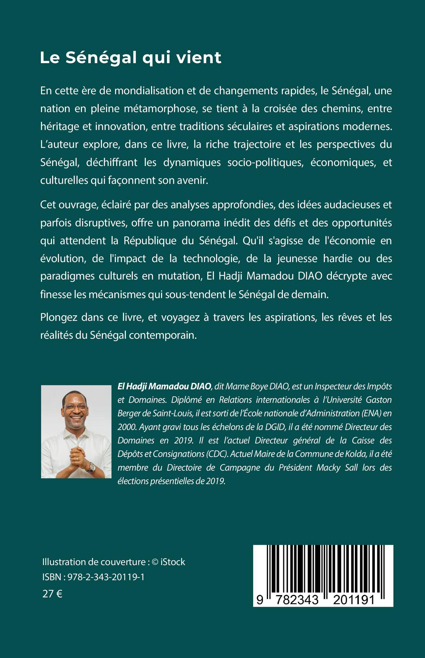 Cet ouvrage, éclairé par des analyses approfondies, des idées audacieuses et parfois disruptives, offre un panorama inédit des défis et des opportunités qui attendent la République du Sénégal. Qu'il s'agisse de l'économie en évolution, de l'impact de la technologie, de la jeunesse hardie ou des paradigmes culturels en mutation, El Hadji Mamadou Diao décrypte avec finesse les mécanismes qui sous-tendent le Sénégal de demain.