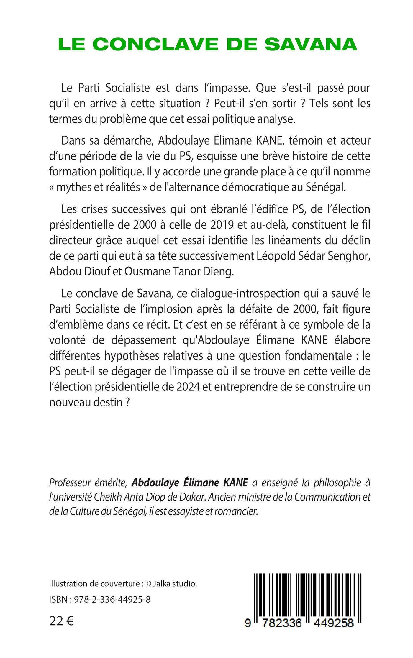 Le Parti Socialiste est dans l’impasse. Que s’est-il passé pour qu’il en arrive à cette situation ? Peut-il s’en sortir ? Tels sont les termes du problème que cet essai politique analyse. Dans sa démarche, Abdoulaye Elimane KANE, témoin et acteur d’une période de la vie du PS, esquisse une brève histoire de cette formation politique. Il y accorde une grande place à ce qu’il nomme « mythes et réalités » de L’Alternance démocratique au Sénégal. Les crises successives qui ont ébranlé l’édifice PS, de l’élection présidentielle de 2000 à celle de 2019 et au-delà, constituent le fil directeur grâce auquel cet essai identifie les linéaments du déclin de ce parti qui eut à sa tête successivement Léopold Sédar Senghor, Abdou Diouf et Ousmane Tanor Dieng. Le conclave de Savana, ce dialogue-introspection qui a sauvé le Parti Socialiste de l’implosion après la défaite de 2000, fait figure d’emblème dans ce récit. Et c’est en se référant à ce symbole de la volonté de dépassement que Abdoulaye Elimane KANE élabore différentes hypothèses relatives à une question fondamentale : le PS peut-il se dégager de l'impasse où il se trouve en cette veille de l’élection présidentielle de 2024 et entreprendre de se construire un nouveau destin ?