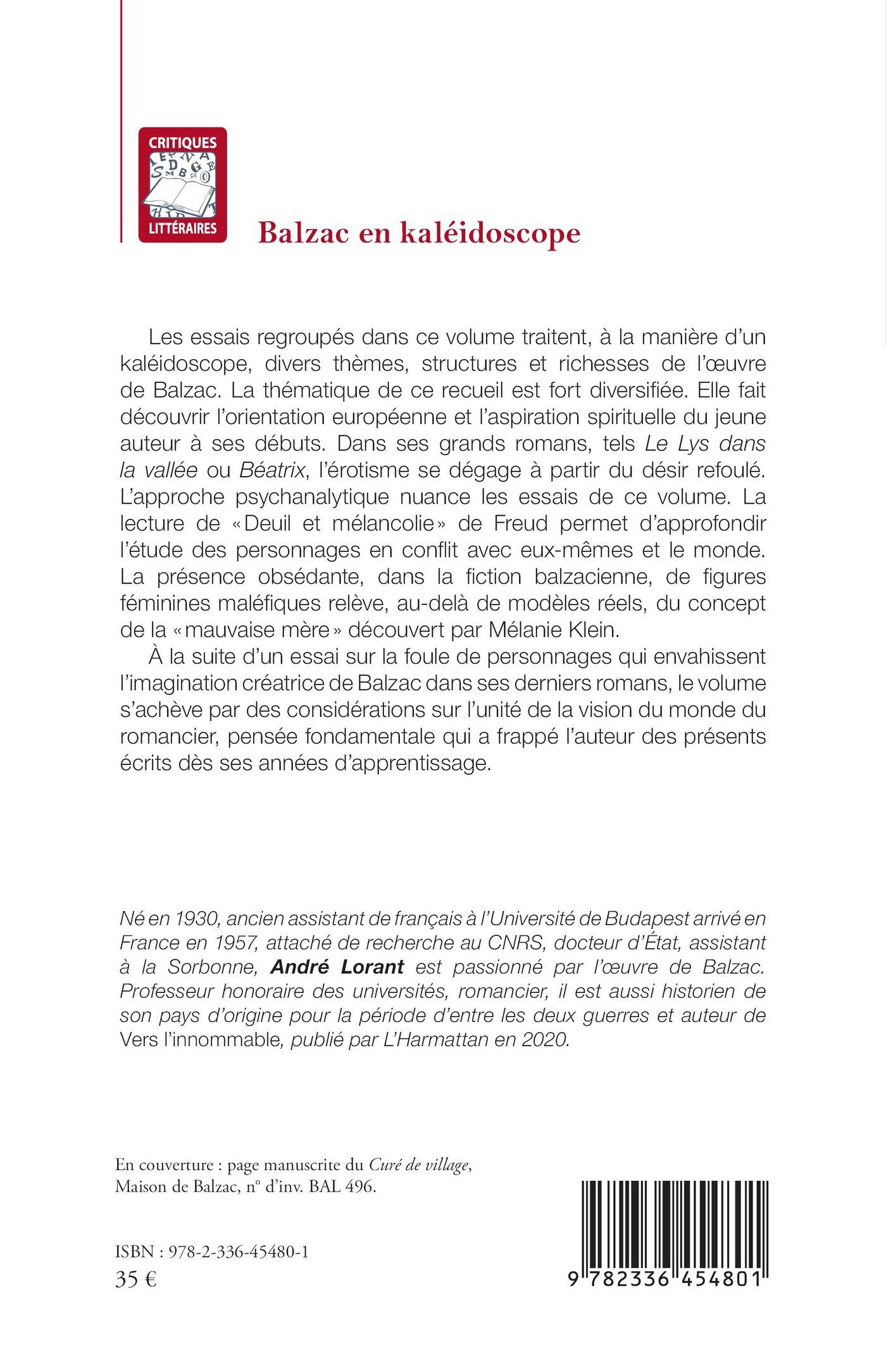 Les essais regroupés dans ce volume traitent, à la manière d’un kaléidoscope, divers thèmes, structures et richesses de l’œuvre de Balzac. La thématique de ce recueil est fort diversifiée. Elle fait découvrir l’orientation européenne et l’aspiration spirituelle du jeune auteur à ses débuts. Dans ses grands romans, tels Le Lys dans la vallée ou Béatrix, l’érotisme se dégage à partir du désir refoulé. L’approche psychanalytique nuance les essais de ce volume. La lecture de « Deuil et mélancolie » de Freud permet d’approfondir l’étude des personnages en conflit avec eux-mêmes et le monde. La présence obsédante, dans la fiction balzacienne, de figures féminines maléfiques relève, au-delà de modèles réels, du concept de la « mauvaise mère » découvert par Mélanie Klein.