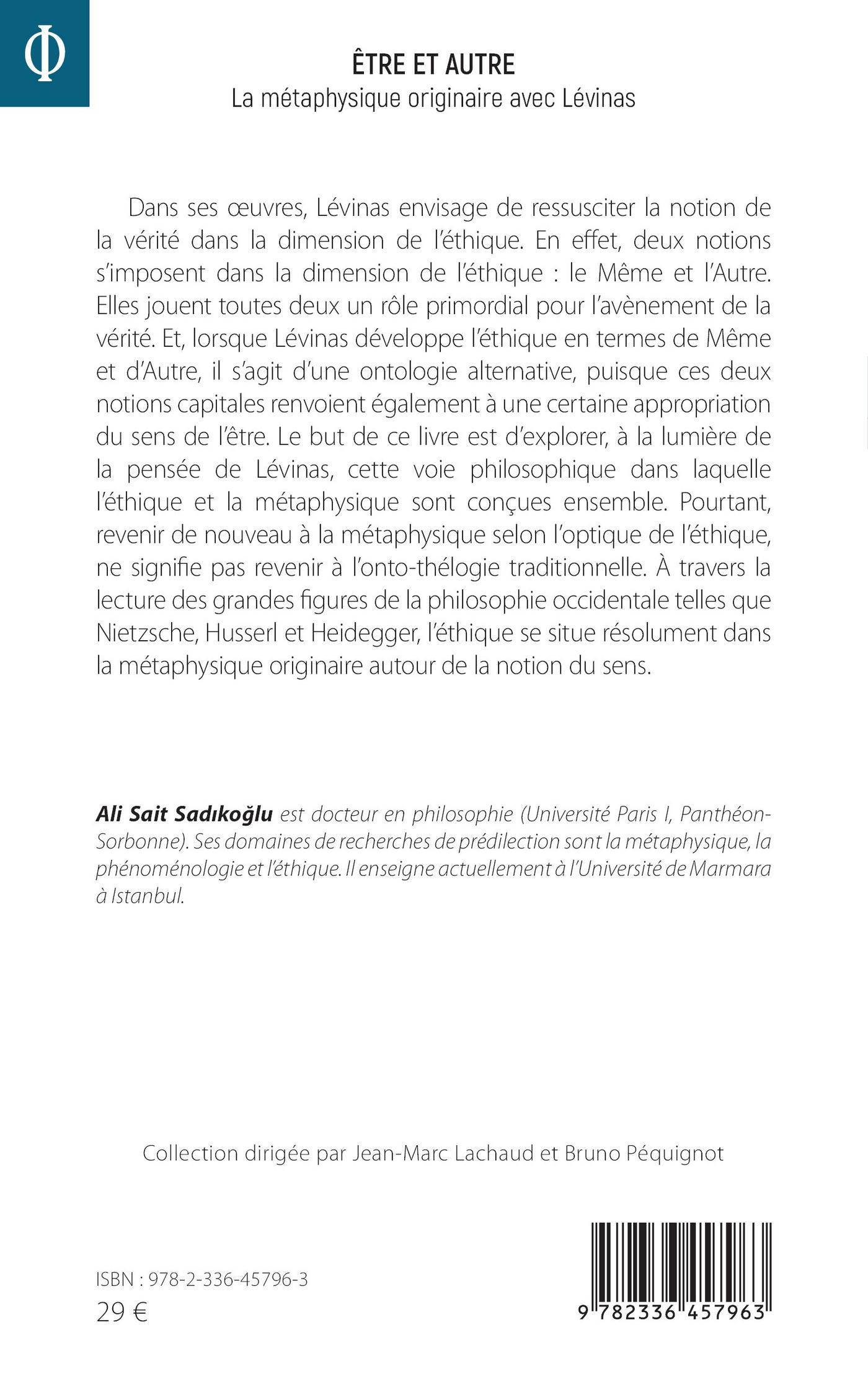 Dans ses œuvres, Lévinas envisage de ressusciter la notion de la vérité dans la dimension de l’éthique. En effet, deux notions s’imposent dans la dimension de l’éthique : le Même et l’Autre. Elles jouent toutes deux un rôle primordial pour l’événement de la vérité. Et, lorsque Lévinas développe l'éthique en termes de Même et d'Autre, il s'agit d'une ontologie alternative, puisque ces deux notions capitales renvoient également à une certaine appropriation du sens de l'être. Le but de ce livre est d'explorer, à la lumière de la pensée de Levinas, cette voie philosophique dans laquelle l'éthique et la métaphysique sont conçues ensemble. Pourtant, revenir de nouveau à la métaphysique selon l’optique de l’éthique, ne signifie pas revenir à l’onto-thélogie traditionnelle. À travers la lecture des grandes figures de la philosophie occidentale telles que Nietzsche, Husserl et Heidegger, l’éthique se situe résolument dans la métaphysique originaire autour de la notion du sens.