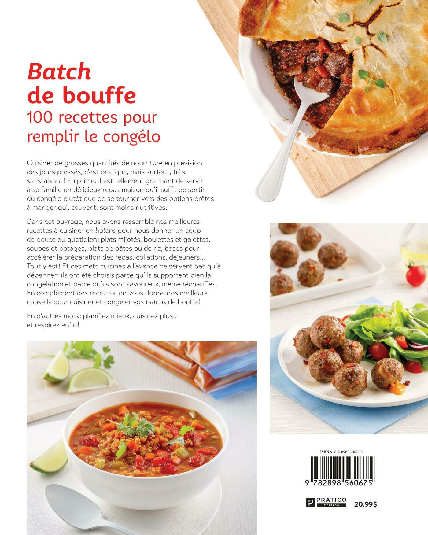 Cuisiner de grosses quantités de nourriture en prévision des jours pressés, c’est pratique, mais surtout, très satisfaisant ! En prime, il est tellement gratifiant de servir à sa famille un délicieux repas maison qu’il suffit de sortir du congélo plutôt que de se tourner vers des options prêtes à manger qui, souvent, sont moins nutritives. Dans cet ouvrage, nous avons rassemblé nos meilleures recettes à cuisiner en batchs pour nous donner un coup de pouce au quotidien : plats mijotés, boulettes et galettes, soupes et potages, plats de pâtes ou de riz, bases pour accélérer la préparation des repas, collations, déjeuners… Tout y est ! Et ces mets cuisinés à l’avance ne servent pas qu’à dépanner : ils ont été choisis parce qu’ils supportent bien la congélation et parce qu’ils sont savoureux, même réchauffés.En complément des recettes, on vous donne nos meilleurs conseils pour cuisiner et congeler vos batchs de bouffe ! En d’autres mots : planifiez mieux, cuisinez plus… et respirez enfin !