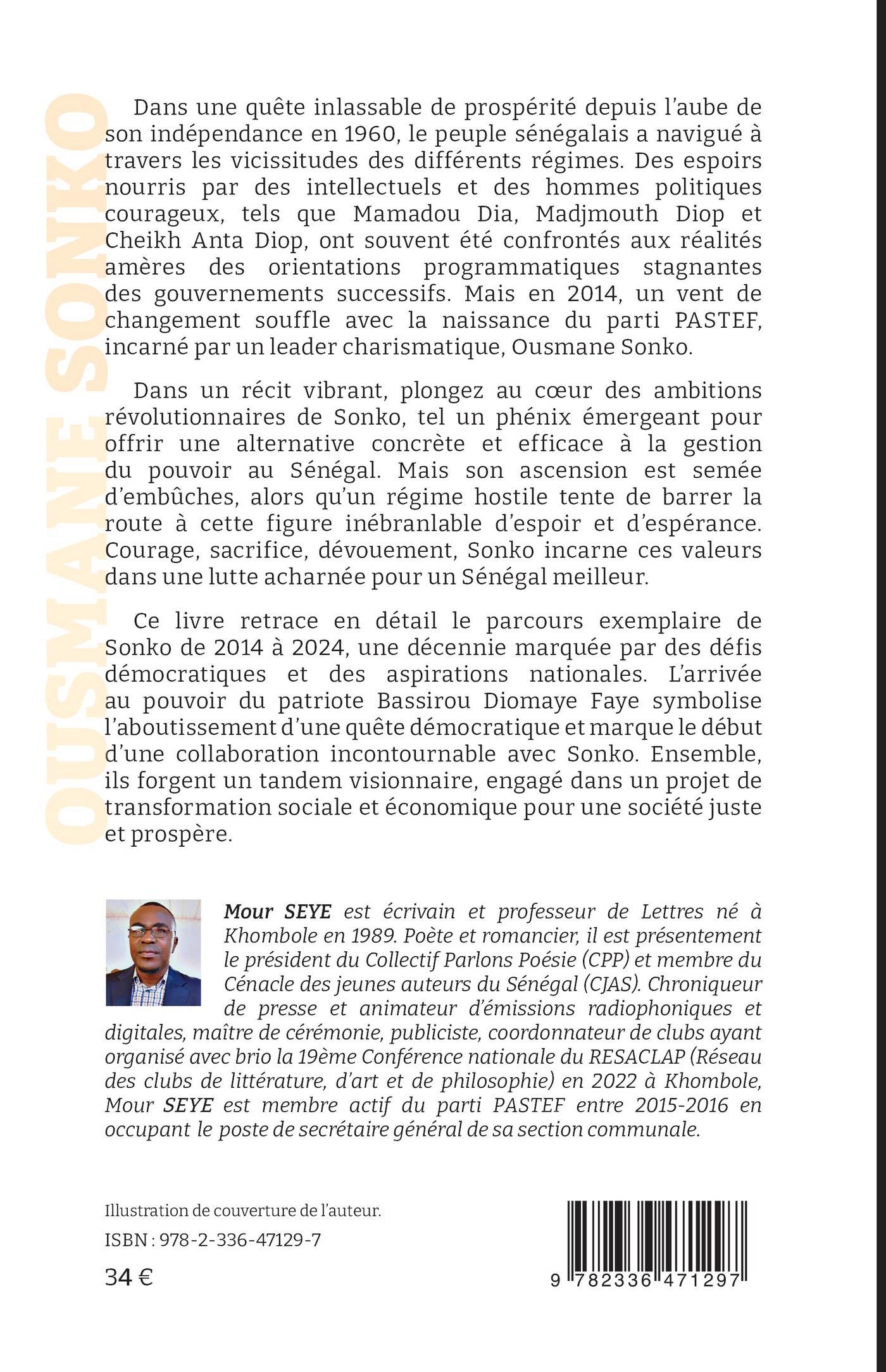 Ce livre retrace en détail le parcours exemplaire de Sonko de 2014 à 2024, une décennie marquée par des défis démocratiques et des aspirations nationales. L'arrivée au pouvoir du patriote Bassirou Diomaye Faye symbolise l'aboutissement d'une quête démocratique et marque le début d'une collaboration incontournable avec Sonko. Ensemble, ils forgent un tandem visionnaire, engagé dans un projet de transformation sociale et économique pour une société juste et prospère.