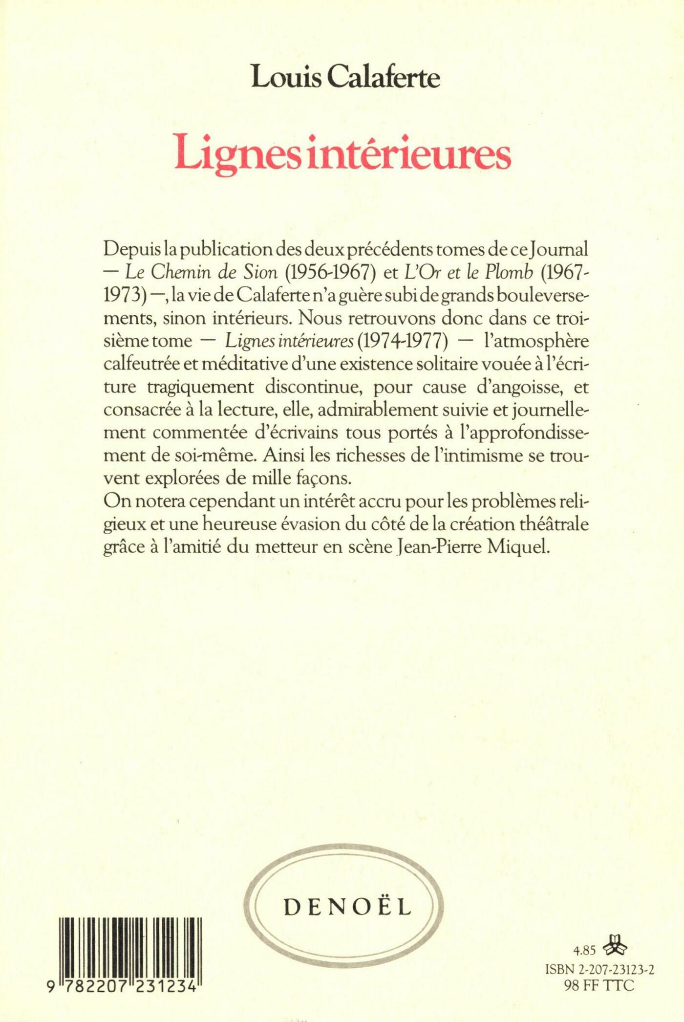 Depuis la publication des deux précédents tomes de ce Journal, Le chemin de Sion (1956-1967) et L'or et le plomb (1967-1973, la vie de Calaferte n'a guère subi de grands bouleversements, sinon intérieurs. Nous retrouvons donc dans ce troisième tome, (1974-1977), l'atmosphère calfeutrée et méditative d'une existence solitaire vouée à l'écriture tragiquement discontinue, pour cause d'angoisse, et consacrée la lecture, elle, admirablement suivie et journellement commentée d'écrivains tous portés à l'approfondissement de soi-même. Ainsi les richesses de l'intimisme se trouvent explorées de mille façons. On notera cependant un intérêt accru pour les problèmes religieux et une heureuse évasion du côté de la création théâtrale grâce l'amitié du metteur en scène Jean-Pierre Miquel.