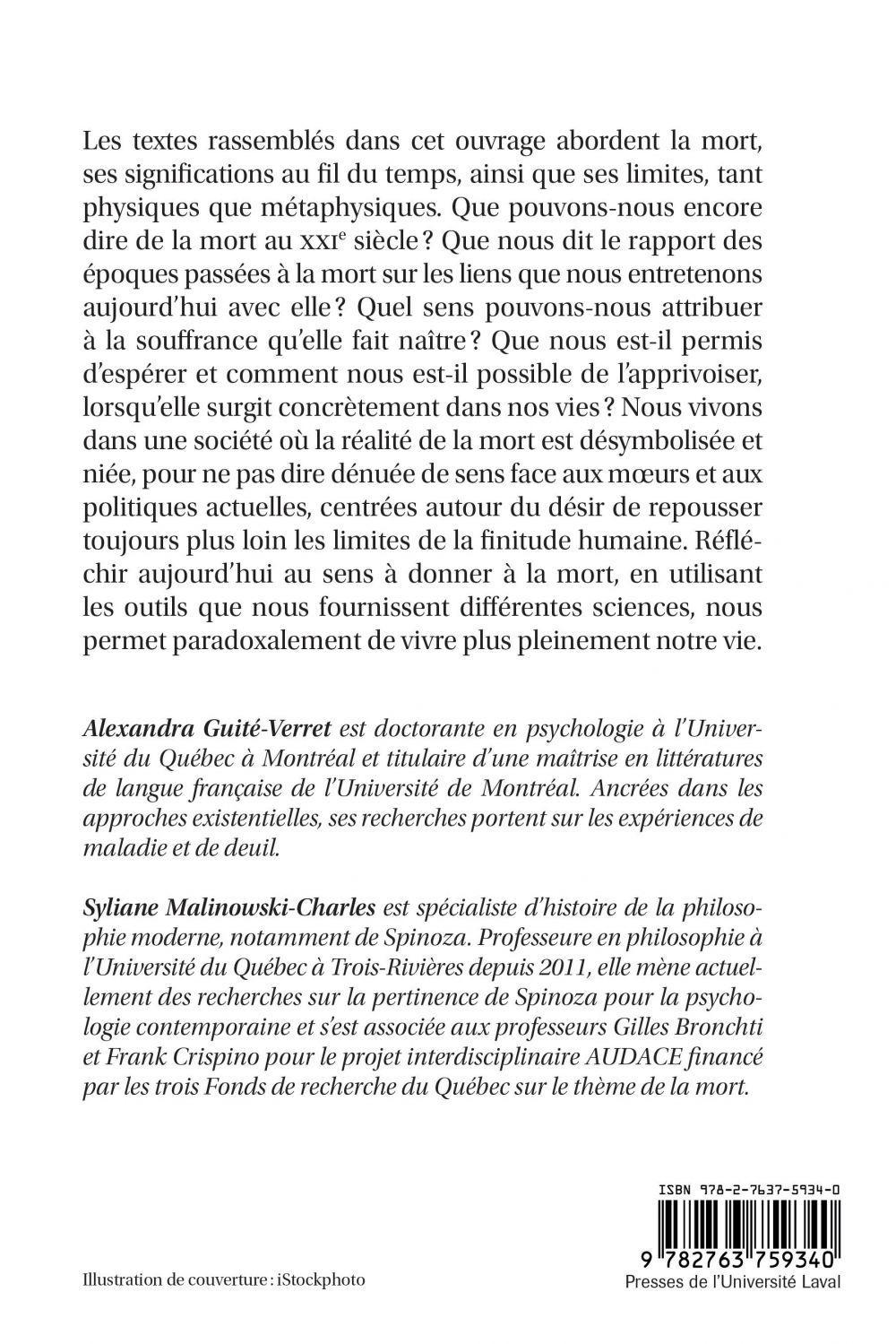 Les textes rassemblés dans cet ouvrage abordent la mort, ses significations au fil du temps, ainsi que ses limites, tant physiques que métaphysiques. Que pouvons-nous encore dire de la mort au XXIe siècle ? Que nous dit le rapport des époques passées à la mort sur les liens que nous entretenons aujourd’hui avec elle ? Quel sens pouvons-nous attribuer à la souffrance qu’elle fait naître ? Que nous est-il permis d’espérer et comment nous est-il possible de l’apprivoiser, lorsqu’elle surgit concrètement dans nos vies ? Nous vivons dans une société où la réalité de la mort est désymbolisée et niée, pour ne pas dire dénuée de sens face aux mœurs et aux politiques actuelles, centrées autour du désir de repousser toujours plus loin les limites de la finitude humaine. Réfléchir aujourd’hui au sens à donner à la mort, en utilisant les outils que nous fournissent différentes sciences, nous permet paradoxalement de vivre plus pleinement notre vie.
