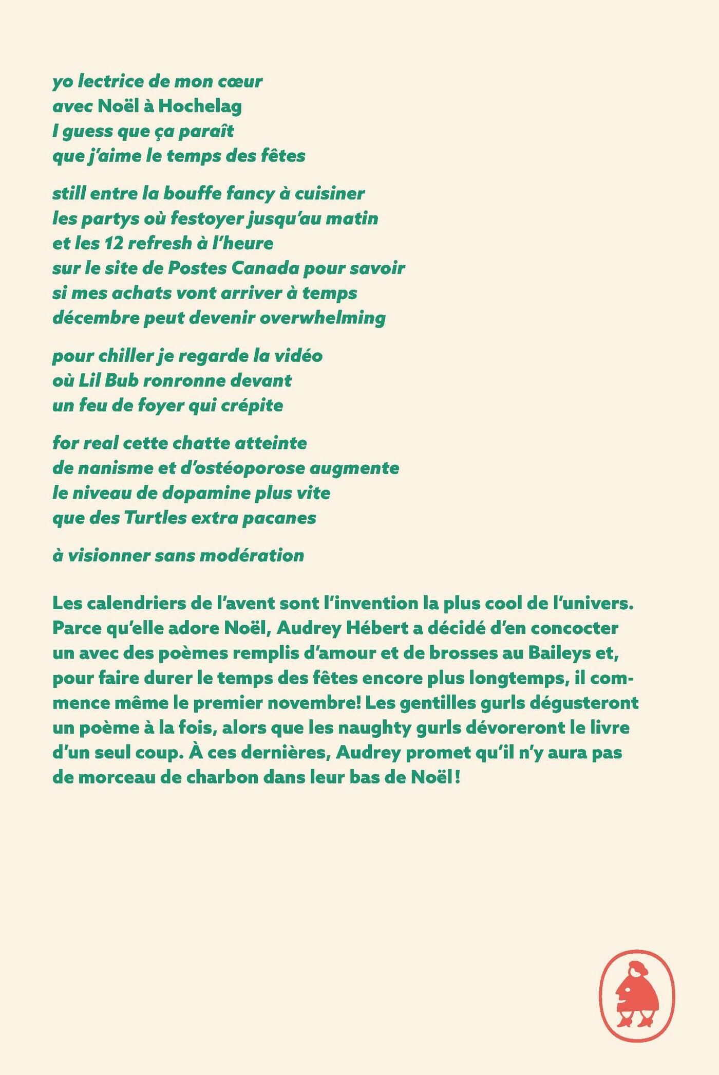 yo lectrice de mon cœur / avec Noël à Hochelag / I guess que ça paraît / que j’aime le temps des fêtes // still entre la bouffe fancy à cuisiner / les partys où festoyer jusqu’au matin / et les 12 refresh à l’heure / sur le site de Postes Canada pour savoir / si mes achats vont arriver à temps / décembre peut devenir overwhelming // pour chiller je regarde la vidéo / où Lil Bub ronronne devant / un feu de foyer qui crépite // for real cette chatte atteinte de nanisme / et d’ostéoporose augmente / le niveau de dopamine plus vite / que des Turtles extra pacanes // à visionner sans modération