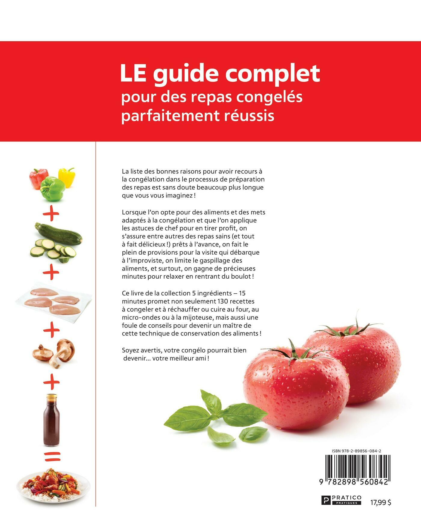 La liste des bonnes raisons pour avoir recours à la congélation dans le processus de préparation des repas est sans doute beaucoup plus longue que vous vous imaginez ! Lorsque l’on opte pour des aliments et des mets adaptés à la congélation et que l’on applique les astuces de chef pour en tirer profi t, on s’assure entre autres des repas sains (et tout à fait délicieux !) prêts à l’avance, on fait le plein de provisions pour la visite qui débarque à l’improviste, on limite le gaspillage des aliments, et surtout, on gagne de précieuses minutes pour relaxer en rentrant du boulot !Ce livre de la collection 5 ingrédients – 15 minutes promet non seulement 130 recettes à congeler et à réchauffer ou cuire au four, au micro-ondes ou à la mijoteuse, mais aussi une foule de conseils pour devenir un maître de cette technique de conservation des aliments !Soyez avertis, votre congélo pourrait bien devenir… votre meilleur ami !