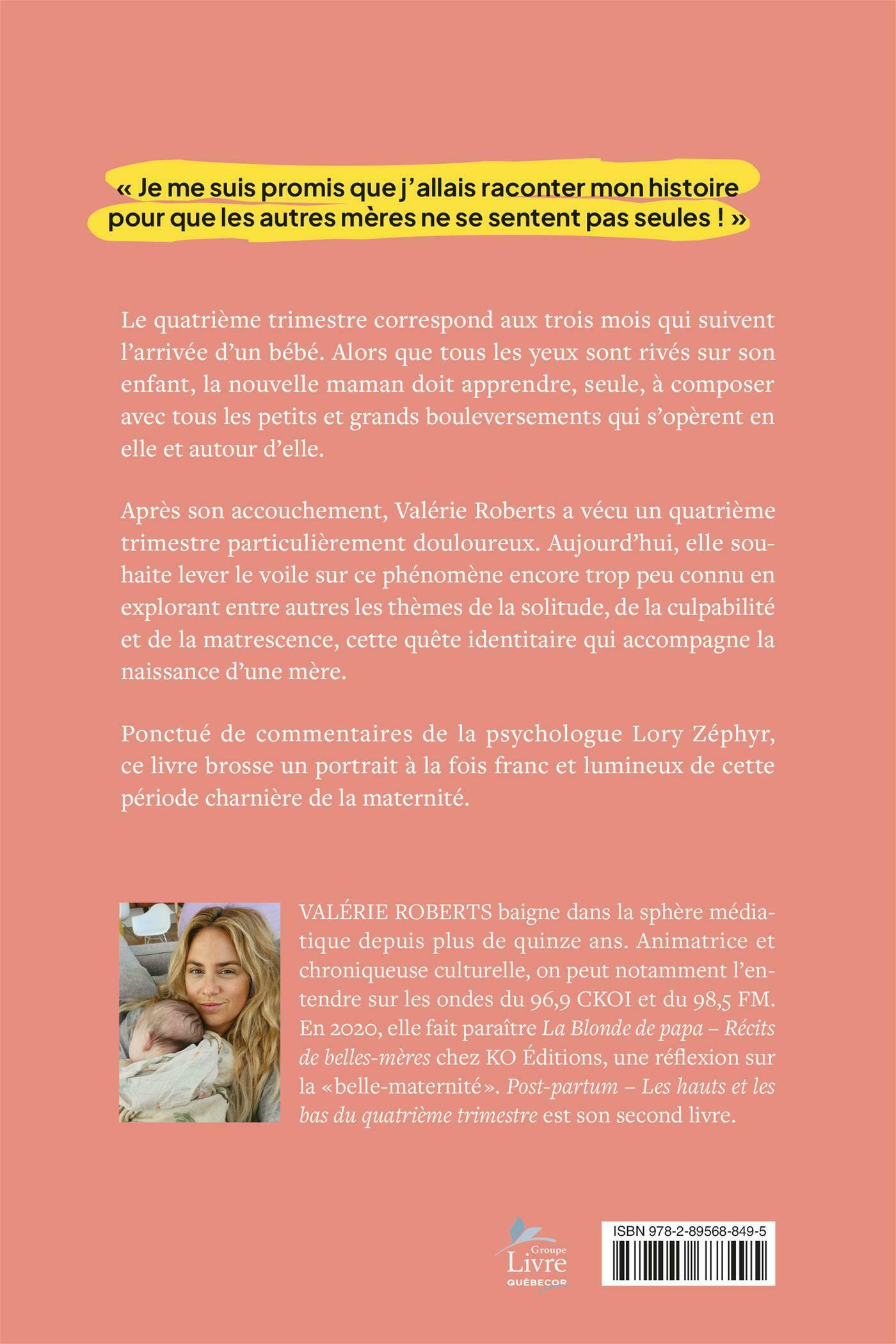 Ponctué de commentaires de la psychologue Lory Zéphyr, ce livre brosse un portrait à la fois franc et lumineux de cette période charnière de la maternité.
