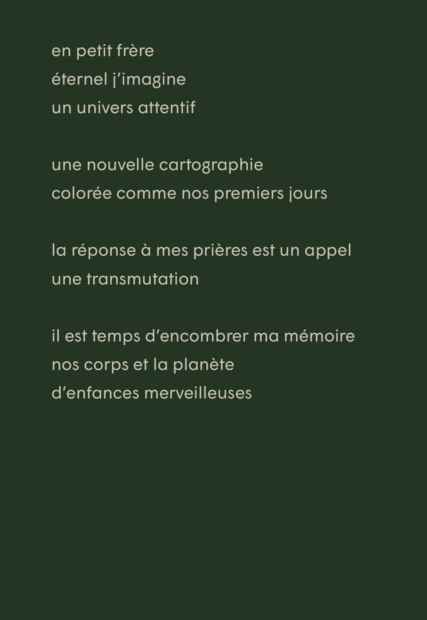 Jean Désy, Raôul Duguay, Carole Forget, Robert Giroux, François Godin, Daniel Grenier, Louis Hamelin, Natasha Kanapé Fontaine, Mahigan Lepage, William S. Messier, Benoit Bordeleau, André Carpentier, Paul Chamberland, Nicholas Dawson, Jean-Marc Desgent, Marc-André Moutquin, Julia Pawlowicz, Danny Plourde, Guy Sioui Durand, Aimée Verret, Nathalie Warren