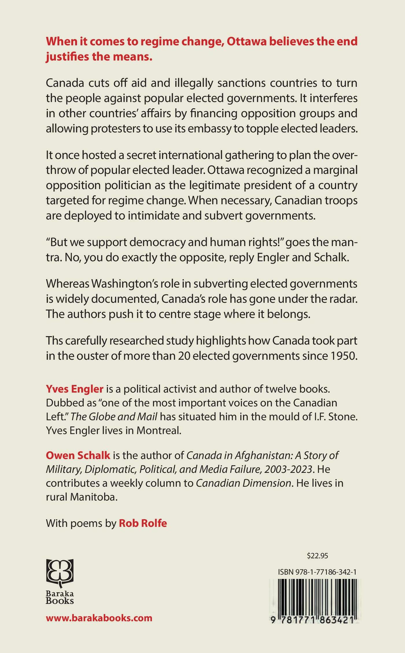 By Yves Engler; Owen Schalk In Books and Featured Books Tagged In Canada, Chile, Congo, Coup d'État, Greece, Guatemala, Haiti, Imperialism, Iran, Palestine, Ukraine, and Venezuela.Canada’s Long Fight Against DemocracyPublished Date: February 1, 2024Pin ItTweetSend to friendSend inquiry DescriptionPre-order now; available February 2024Canada’s Long Fight against Democracy is a sweeping overview of Canadian-backed coups since 1950. It documents Canada’s contribution to the ouster of over 20 elected governments from Mohammad Mossadegh in Iran to Patrice Lumumba in Congo, Salvador Allende in Chile and Jean Bertrand Aristide in Haiti.As part of subverting democracy, Ottawa has cut off aid and imposed illegal sanctions in the hopes of turning the population against the targeted government. Canada has also financed opposition civil society groups and allowed protesters to use its embassy as a staging point to topple a president. They’ve even organized a secret international gathering to discuss overthrowing a popular leader, decided a marginal opposition politician was the legitimate president, and dispatched the Canadian military to subvert democracy.While government officials and the media regularly frame conflicts with geopolitical competitors as motivated by a belief in democracy, the authors debunk the notion that decision-makers in Ottawa are driven by promoting democracy abroad.Washington’s role in subverting elected governments has been detailed in countless studies by scholars and observers from around the world. The literature on Canada’s role in anti-democratic meddling is comparatively limited. In fact, this is the first book to focus on Canada’s role in subverting democracy around the globe.Yves Engler is a political activist and author of twelve books. He has been dubbed as “one of the most important voices on the Canadian Left.” The Globe and Mail has situated him in the mould of I.F. Stone, while Quill & Quire says Engler is “part of that rare but growing group of social critics unafraid to confront Canada’s self-satisfied myths.” Yves Engler lives in Montreal.Owen Schalk is a writer from Manitoba. He is the author of Canada in Afghanistan: A Story of Military, Diplomatic, Political, and Media Failure, 2003-2023 (Lorimer Books, 2023). His articles have been published by Alborada, Monthly Review, and Protean Magazine, and he contributes a weekly column to Canadian Dimension magazine. He also writes fiction, and you can read his short stories in Quagmire Literary Magazine, Sobotka Literary Magazine, Vast Chasm Magazine, and more.