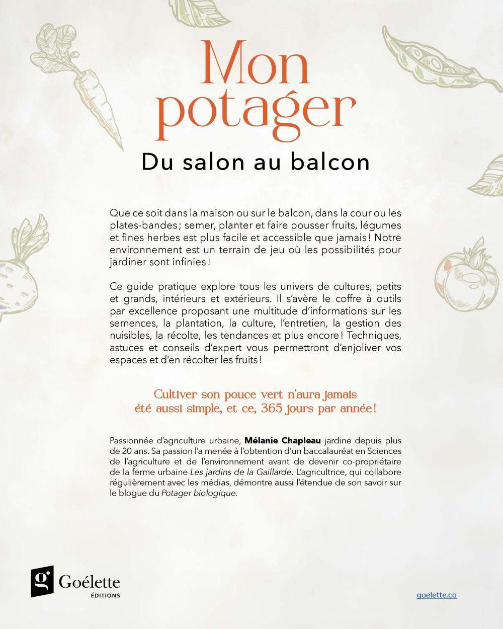 Que ce soit dans la maison ou sur le balcon, dans la cour ou les plates-bandes ; semer, planter et faire pousser fruits, légumes et fines herbes est plus facile et accessible que jamais ! Notre environnement est un terrain de jeu où les possibilités pour jardiner sont infinies ! Ce guide pratique explore tous les univers de cultures, petits et grands, intérieurs et extérieurs. Il s’avère le coffre à outils par excellence proposant une multitude d’informations sur les semences, la plantation, la culture, l’entretien, la gestion des nuisibles, la récolte, les tendances et plus encore ! Techniques, astuces et conseils d’expert vous permettront d’enjoliver vos espaces et d’en récolter les fruits !Cultiver son pouce vert n’aura jamais été aussi simple, et ce, 365 jours par année !