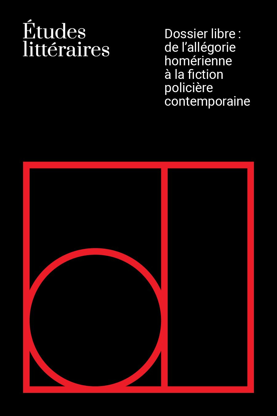 Franchissant librement les époques et les lieux, ce dossier d’Études littéraires explore unéventail de thèmes : l’allégorie homérique y voisine les allégories hégélienne et goethéenne ;l’on y constate que le réalisme de Bonheur d’occasion est teinté d’engagement, queCaillois et Pratchett & Gaiman usent de l’uchronie pour susciter la participation dulecteur ou encore que la fiction policière dans des oeuvres de Wajdi Mouawad et d’OlgaTokarczuk rencontre le monde animal. Ce sont également différents rapports qui y sontretravaillés – pensons à celui des lecteurs et des auteurs du XIXe siècle avec le livre ; celuidu protagoniste de La Peste avec la sainteté ; et finalement, celui du sujet lyrique avec lemonde et la matière.