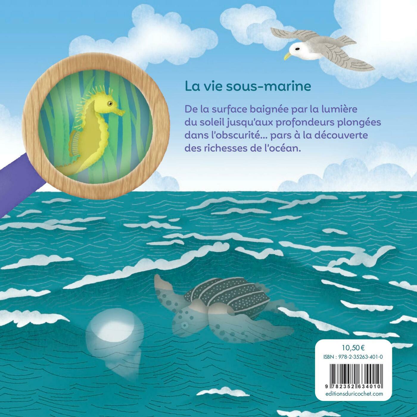 Sur les rivages ou en pleine mer, on ne rencontre pas les mêmes êtres vivants, loin de là ! Heureusement, dans cette immensité bleue, il y a de la place pour tout le monde !Aux abords des plages, les rayons du soleil traversent la surface de l'eau et éclairent les herbiers où se concentre la vie : coquillages, crabes et petits poissons... Quand on s'éloigne du littoral, l'océan regorge aussi de surprises !Tiens, voilà une baleine gigantesque ! Que fait-elle la bouche ouverte ? Elle chasse bien sûr ! Mais pas des poissons ou des phoques. Non, ce qu'elle préfère, c'est le plancton ! Ce monde de demi-portions constitué d'algues microscopiques, de larves minuscules et de petites méduses. Étonnant, non ?