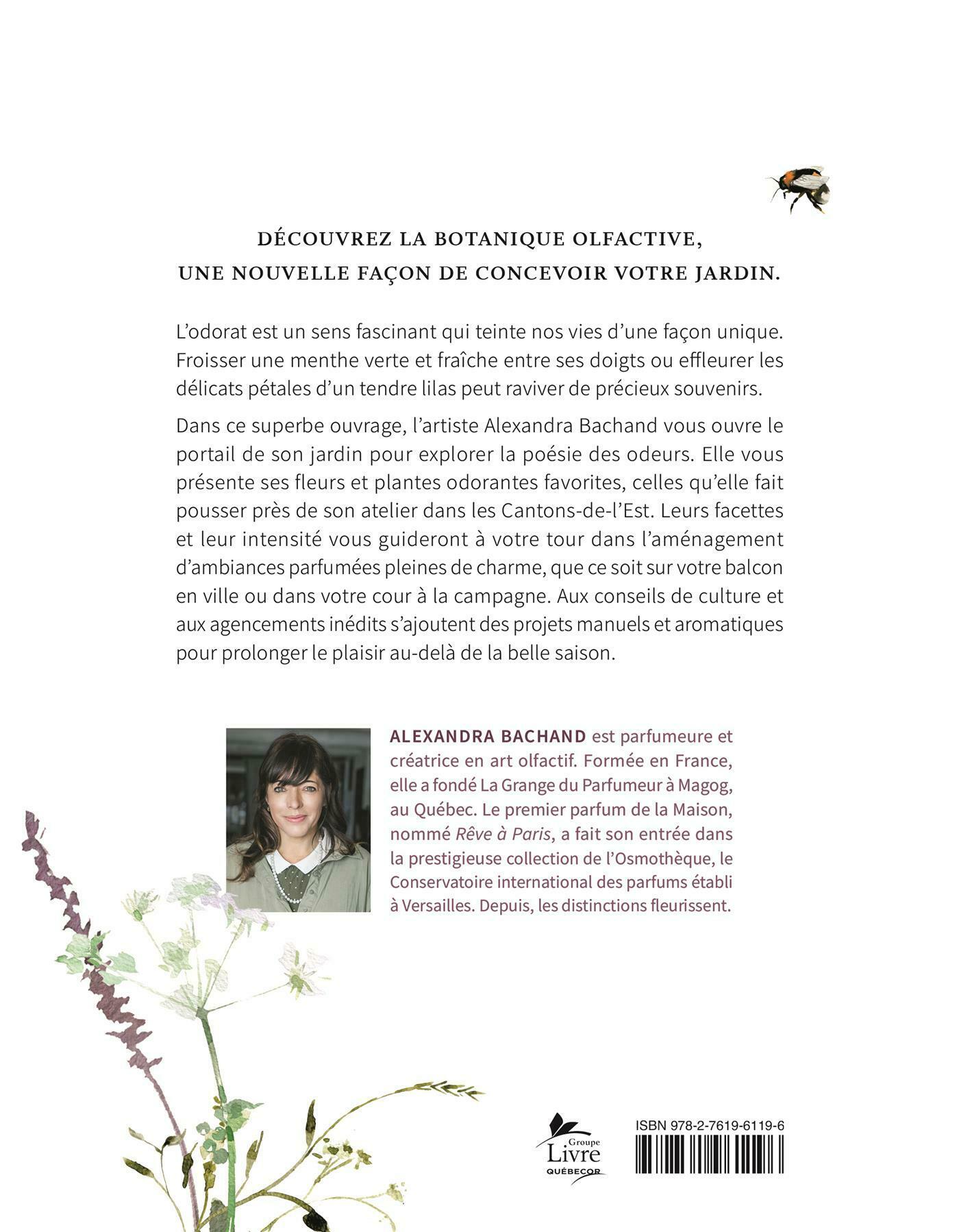 Dans ce superbe ouvrage, l'artiste Alexandra Bachand vous ouvre le portail de son jardin pour explorer la poésie des odeurs. Elle vous présente ses fleurs et plantes odorantes favorites, celles qu'elle fait pousser près de son atelier dans les Cantons-de-l'Est. Leurs facettes et leur intensité vous guideront à votre tour dans l'aménagement d'ambiances parfumées pleines de charme, que ce soit sur votre balcon en ville ou dans votre cour à la campagne. Aux conseils de culture et aux agencements inédits s'ajoutent des projets manuels et aromatiques pour prolonger le plaisir au-delà de la belle saison.
