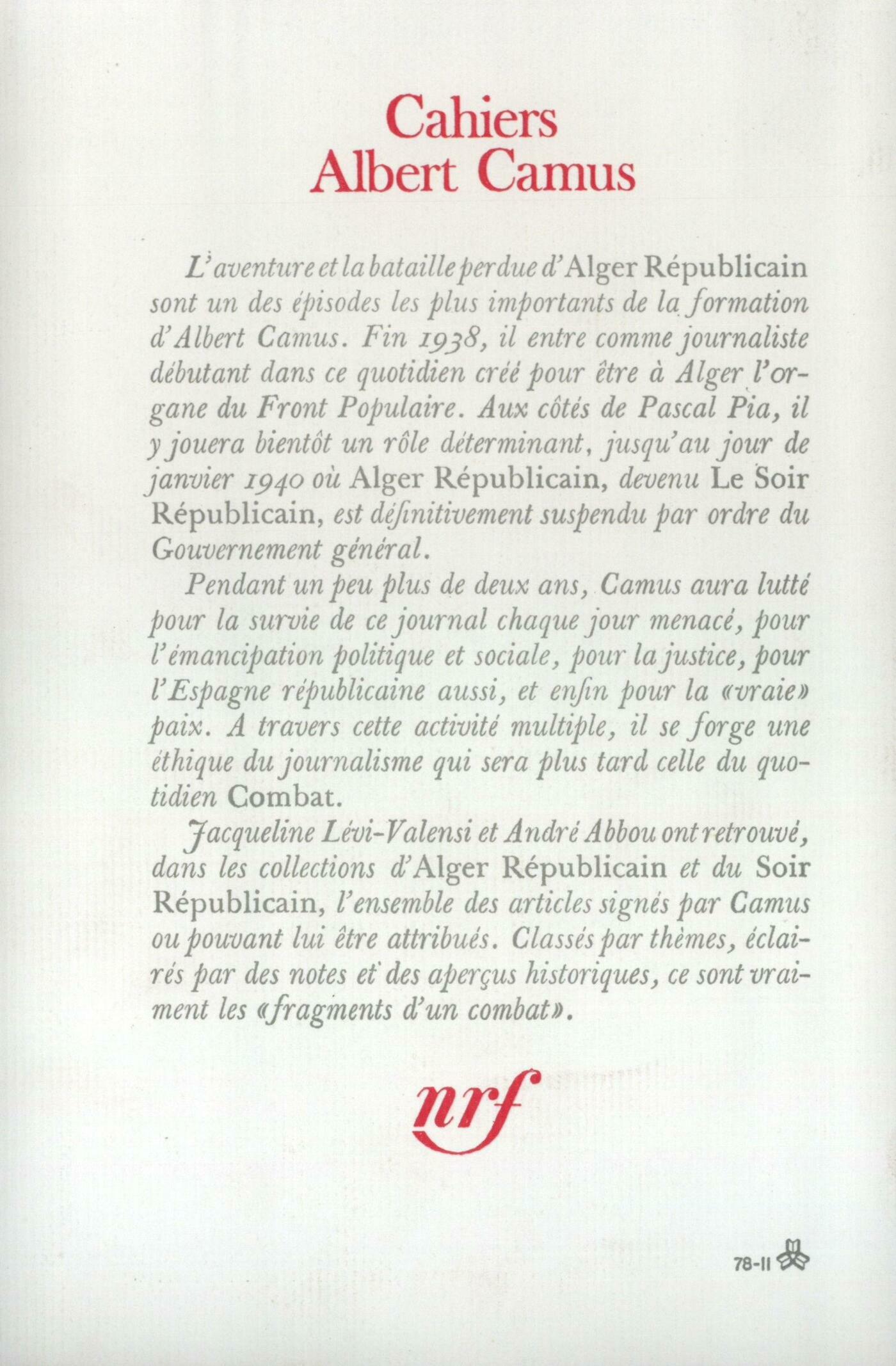 Collection : Cahiers Albert Camus