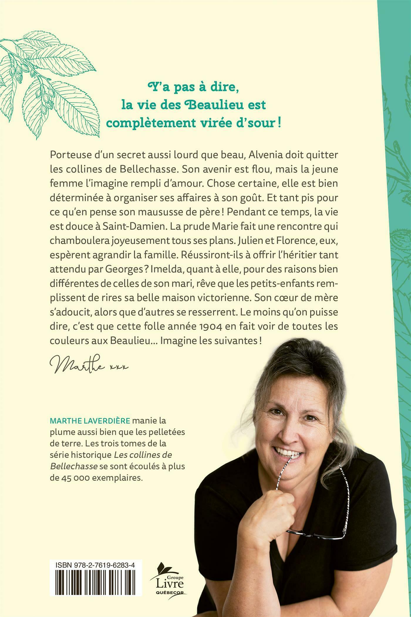 Porteuse d'un secret aussi lourd que beau, Alvenia doit quitter les collines de Bellechasse. Son avenir est flou, mais la jeune femme l'imagine rempli d'amour. Chose certaine, elle est bien déterminée à organiser ses affaires à son goût. Et tant pis pour ce qu'en pense son maususse de père ! Pendant ce temps, la vie est douce à Saint-Damien. La prude Marie fait une rencontre qui chamboulera joyeusement tous ses plans. Julien et Florence, eux, espèrent agrandir la famille. Réussiront-ils à offrir l'héritier tant attendu par Georges ? Imelda, quant à elle, pour des raisons bien différentes de celles de son mari, rêve que les petits-enfants remplissent de rires sa belle maison victorienne. Son cœur de mère s'adoucit, alors que d'autres se resserrent. Le moins qu'on puisse dire, c'est que cette folle année 1904 en fait voir de toutes les couleurs aux Beaulieu... Imagine les suivantes !