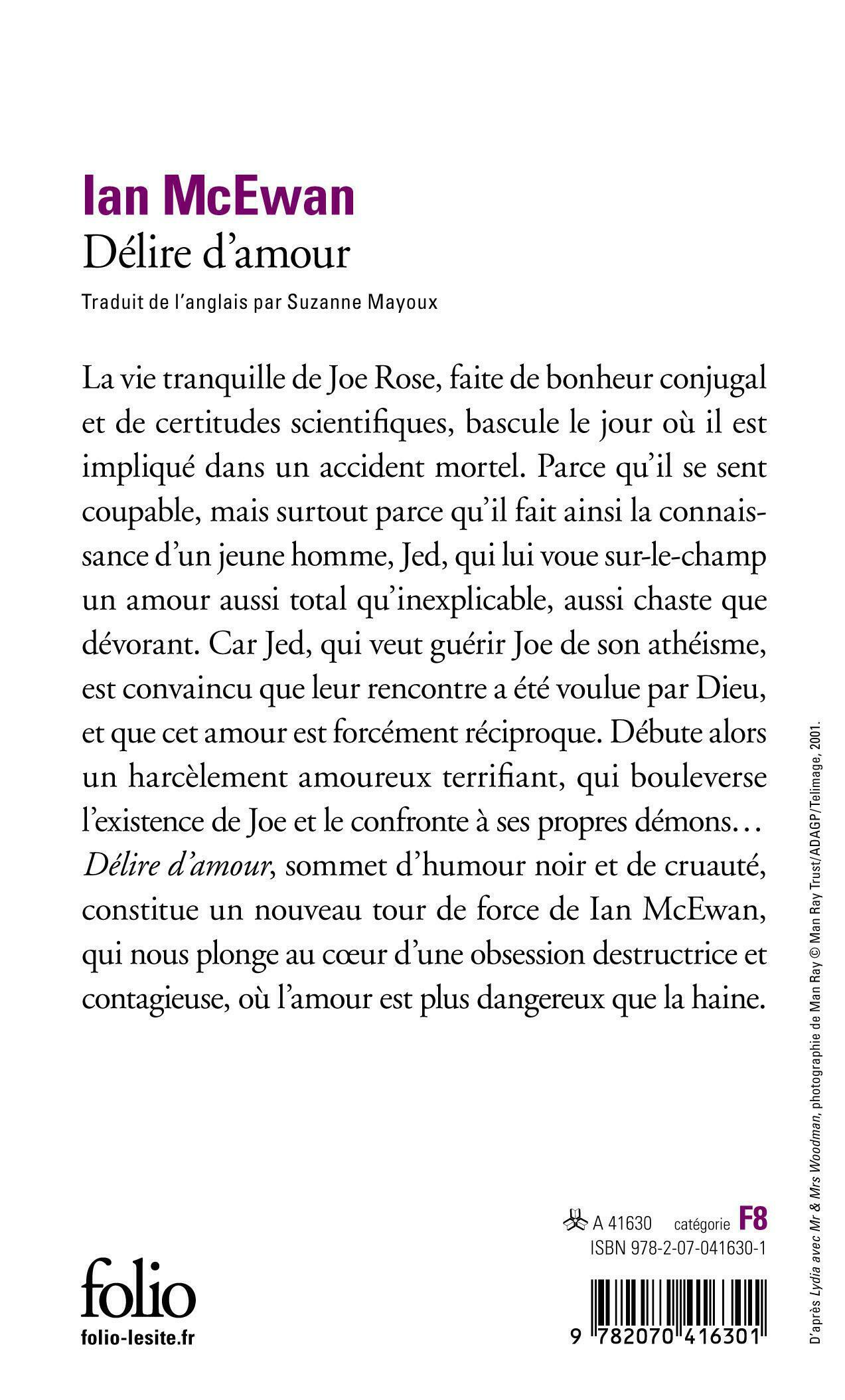 La vie tranquille de Joe Rose, faite de bonheur conjugal et de certitudes scientifiques, bascule le jour où il est impliqué dans un accident mortel. Parce qu'il se sent coupable, mais surtout parce qu'il fait ainsi la connaissance d'un jeune homme, Jed, qui lui voue sur-le-champ un amour aussi total qu'inexplicable, aussi chaste que dévorant. Car Jed, qui veut guérir Joe de son athéisme, est convaincu que leur rencontre a été voulue par Dieu, et que cet amour est forcément réciproque. Débute alors un harcèlement terrifiant, qui bouleverse l'existence de Joe et le confronte à ses propres démons...Délire d'amour, sommet d'humour noir et de cruauté, constitue un nouveau tour de force de Ian McEwan, qui nous plonge au cœur d'une obsession destructrice et contagieuse, où l'amour est plus dangereux que la haine.