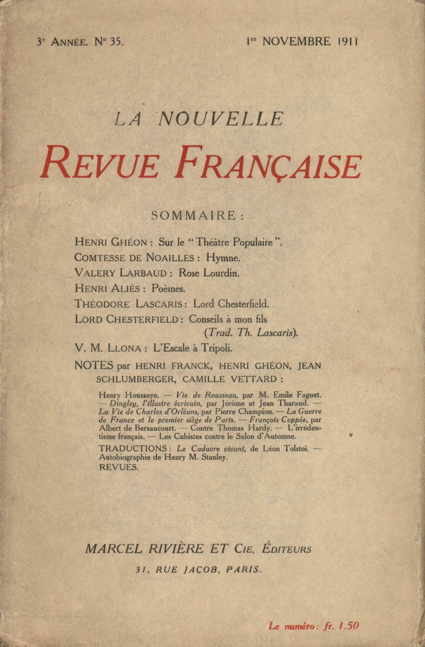 Publication : 1 novembre 1911