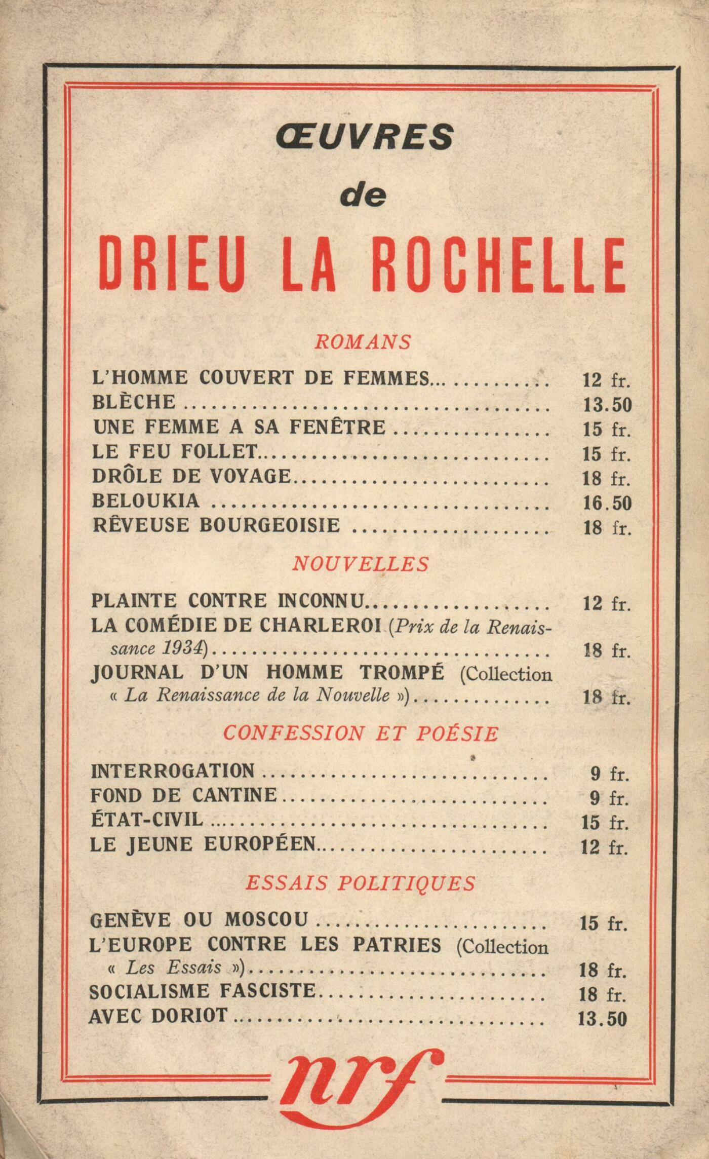 Paul Claudel, Le Pape Pie XIJulien Benda, Songe d'Éleuthčre (I)Jean Guéhenno, Journal de vacancesFrançois-Paul Alibert, Ô fraternels amants...Sören Kierkegaard, Le penseur subjectifJean Giraudoux, Choix des Élues (Fin)Textes : Jean Montargis, La premičre et la derničre uvre dramatique de Victor HugoVictor Hugo, Le Château du DiableChroniques : Jean Paulhan, La démocratie fait appel au premier venu Alain, En lisant FieldingChronique dramatique : Paul Léautaud, Le Treizičme Arbre, d'André Gide (Le Rideau de Paris) - Manon Lescaut, de Marcelle Maurette (Théâtre Montparnasse) - L'étourderie d'un critique dramatiqueBoris de Schlzer, Chronique musicaleEssais critiques : Marcel Arland, Essais, contes et nouvelles, d'Alfred de Musset - Le Toutounier, par Colette - Augustin - Les Vanilliers, par Georges LimbourNotes : le roman : Benjamin Crémieux, Cécile parmi nous, par Georges Duhamel (Mercure de France)Maurice Heine, Les enfants du limon, par Raymond Queneau (Éditions de la N. R. F.)Notes : la poésie : A. Rolland de Renéville, uvres complčtes, de Lautréamont (Éditions José Corti ; Éditions G. L. M.)Notes : histoire : Julien Benda, La Guerre de 1870-1871 et la Commune, par Georges Bourgin (Les Éditions nationales)Notes : sciences : Jean Ullmo, L'évolution des idées en physique, par A. Einstein et L. Infeld (Flammarion)Notes : lettres étrangčres : Daniel-Rops, Le Château, par Franz Kafka (Éditions de la N. R. F.)Notes : les arts : André Lhote, PicassoRevues et journaux : Jean Grenier, Les revues en Afrique du Nord Montesquieu, Une des ŤRéflexionsťHenri-Frédéric Amiel, Du Journal [Fragments inédits] Anonymes, Ŕ propos du ŤFrançois Mauriacť de SartreT.S. Eliot, Mort du CriterionJean Guérin, Sur les Cahiers d'Armand PetitjeanL'air du mois : Julien Benda, Violation de sépulture - Une race - Dangereux IsraëlJean Grenier, Les leçons de l'Histoire - Barcelone Étiemble, MexiqueJean Follain, Le vagabond de la dixičme chambreDenis Marion, Heureux dénouementAndré Lhote, Un groupe de jeunesJacques Audiberti, La paixCharles-Albert Cingria, AdamsJean Guérin, Bulletin
