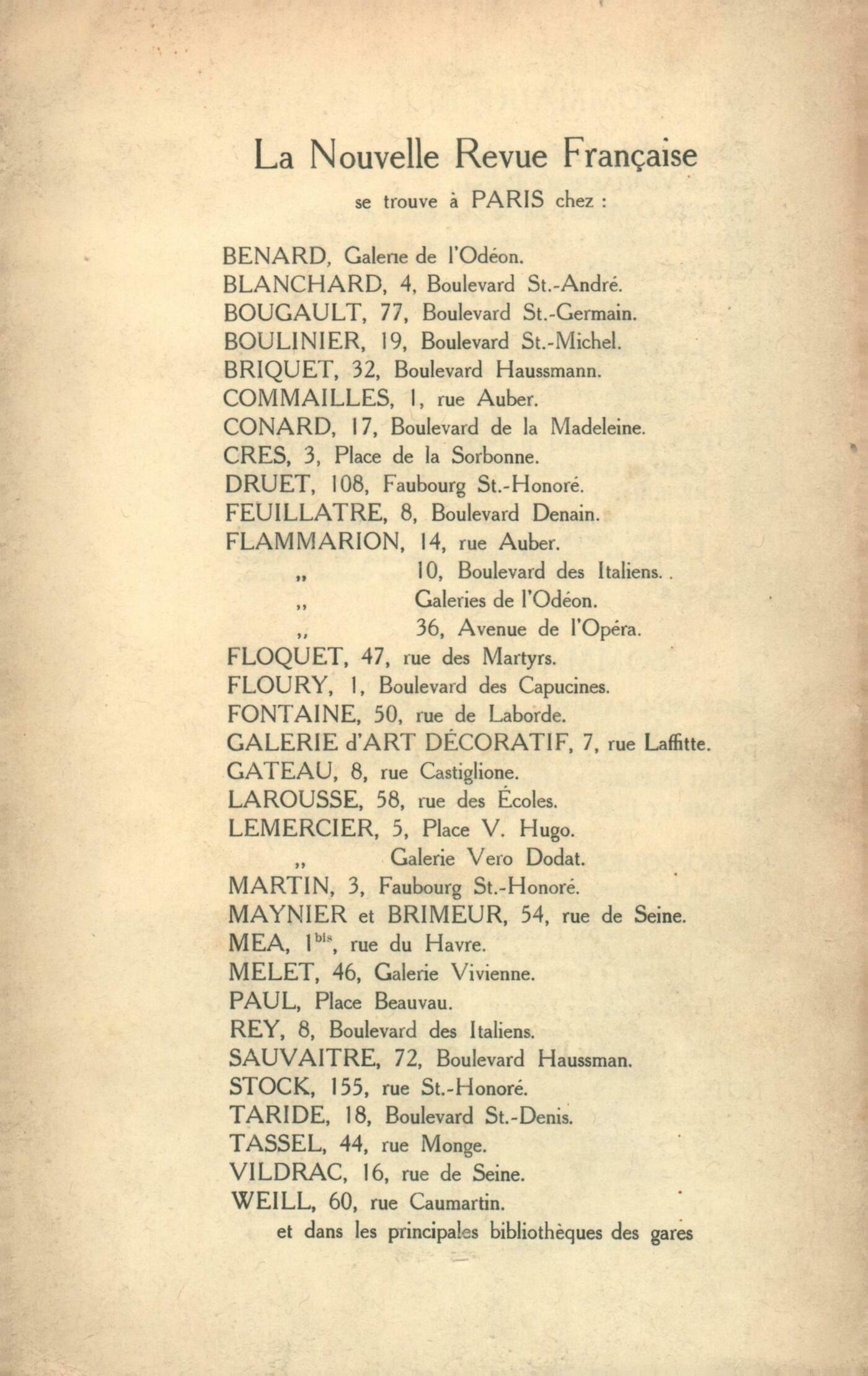 Jacques Rivičre, Portrait de Joachim Du BellayFrancis Viélé-Griffin, PasiphaéPaul Claudel, L'Annonce faite ŕ Marie (Acte IV)François-Paul Alibert, Quand le Printemps reviendraJérôme et Jean Tharaud, La Fęte Arabe (fin)Chronique de Caërdal : André Suarčs, Sur la bonne rive - De ChateaubriandChronique des počmes : Henri Ghéon, Choix de Poésies de Théodore de Banville (Eug. Fasquelle) - L'Hellénisme des Parnassiens - Banville et Emmanuel SignoretChronique des romans : Louis Bertrand, Lettre ŕ M. Jacques CopeauChronique du Théâtre : Jean Schlumberger, La profession de Madame Warren, par Bernard Shaw (Théâtre des Arts)Notes : Jean Schlumberger, Henri FranckCamille Vettard, La Correspondance de Gérard de Nerval (Mercure)Valery Larbaud, Vie de Mélanie, bergčre de La Salette (Mercure) Alain-Fournier, Sur les champs de bataille (Ollendorff)Jean Schlumberger, La Victoire des Vaincus, par Louis Dumont-Wilden et Léon Souguenet (Fayard)Edmond Pilon, L'élčve Gilles, par André Lafon (Perrin et Cie)Henri Ghéon, Exposition de Madame Marval (Galerie Druet)Edmond Pilon, Exposition de paysages des Pyrénées, de Charles Lacoste (Galerie Eugčne Blot)Henri Ghéon, Le Psaume de M. Florent Schmitt (Concerts Colonne)Revues : Anonymes, Revues allemandes - Revues françaises