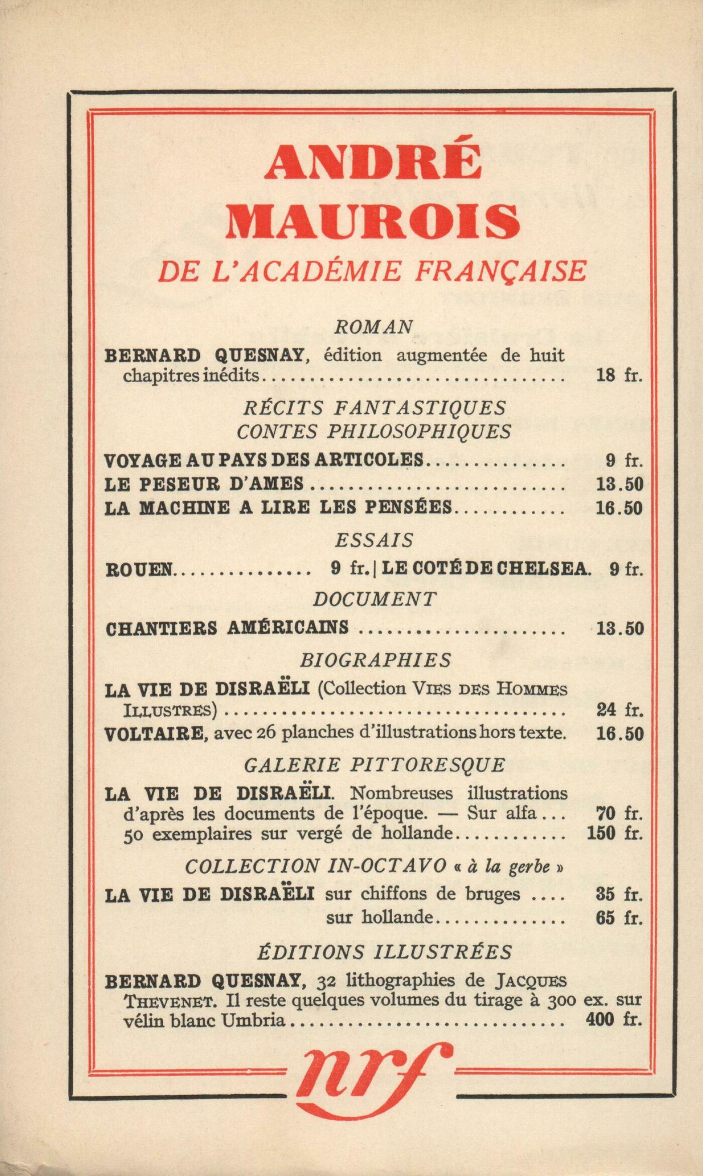 Armand-M. Petitjean, Péguy et nousCharles Péguy, Par ce demi-clair matinClara Malraux, Le livre de comptesJules Supervielle, Des deux côtés des PyrénéesDenis de Rougemont, Don JuanRichard Hughes, Péril en mer (IV)Documents : Gaston R. - André Malvezin - Suzanne Malvezin, Une histoire de séductionChroniques : André Suarčs, Chronique de CaërdalJean Grenier, Réflexions sur la pauvreté et la paixM. Saint-Clair, Portrait du peintre Henri-Edmond CrossEssais critiques : Marcel Arland, Lady Macbeth au village, par Nicolas Leskov - Gens d'église, par Nicolas Leskov - Une famille déchue, par Nicolas Leskov - Les Javanais, par Jean Malaquais - Des souris et des hommes, par John Steinbeck - Sur une nouvelle vague de puritanismeNotes : la poésie : Julien Lanoë, Počmes de circonstancesNotes : littérature : Marie Delcourt, Anthologie grecque (Belles-Lettres)Jean Prévost, uvres complčtes, I, de Malebranche (Boivin)Léon Bopp, Voltaire, par John Charpentier (Tallandier)Notes : histoires naturelles : Julien Benda, La vie du chameau, par Elian-J. Finbert (Albin Michel)Henri Pourrat, Portraits d'oiseaux, par Jacques Delamain (Stock)Notes : l'Histoire : Benjamin Crémieux, La vie quotidienne ŕ Rome ŕ l'apogée de l'Empire, par Jérôme Carcopino (Hachette)Notes : lettres étrangčres : Jean-Paul Sartre, Ŕ propos de Le Bruit et la Fureur (Fin)Roger Breuil, Bahia de tous les saints, par Jorge Amado (Gallimard)Notes : la musique : Boris de Schlzer, En écoutant Beethoven - Jeanne d'Arc au bűcher, de Paul Claudel et Arthur Honegger (Théâtre Chaillot)Les revues : Armand-M. Petitjean, Volontés et la direction de conscienceClaude Roy, Minotaure et VerveL'air du mois : Paul Léautaud, Réception ŕ l'AcadémiePierre Hamp, La lutte pour l'empire du monde Étiemble, Mexique (Suite)Julien Benda, IndiscrétionLéon-Paul Fargue, Roger Lannes, počteMaurice Sachs, Ce célčbre méconnu : Jean HugoDenis Marion, Justification des vedettesCharles-Albert Cingria, Lutecia Do SurJean Guérin, Bulletin