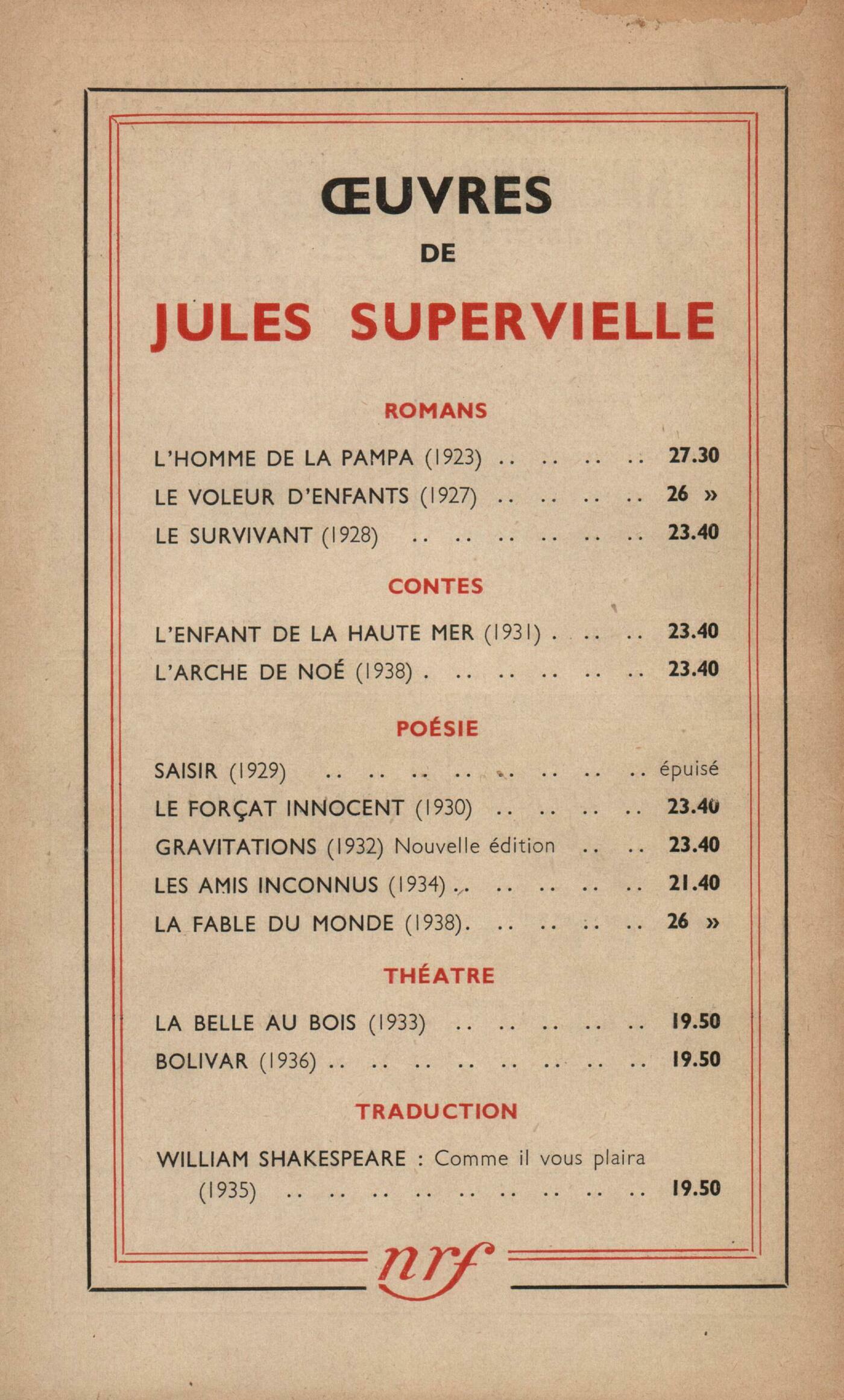Jean Giono, Description de Marseille (Fin)André Salmon, Odeur de poésie (II)Boris Pasternak, L'avčnement du visageJean Follain, PočmesPaul Arnold, Mythologie japhétiqueJacqueline Allan-Dastros, PočmePaul Masson-Oursel, Moličre face ŕ la tradition de la comédieMarius Richard, La Rapée (I)Chroniques : Ramon Fernandez, Montalembert Fieschi, L'événement et le hérosPierre Drieu la Rochelle, BilanNotes : Jean Follain, La Peine capitale, par Roger Lannes (Éditions Denoël)Maurice Boucher, Btrachtungen der Stille und Besinnlichkeit, par Hermann de Kerserling (Eugen Diederichs Verlag)Félicien Challaye, La pensée de Jawaharlal NehruChristian Michelfelder, Le Prince, par Machiavel (Garnier)Luc Benoist, La Série d'Or, par E. Béothy (Chanth)Maurice Daumas, Les sciences de la vie aux XVIIe et XVIIIe sičcles, par Émile Guyénot (Albin Michel)