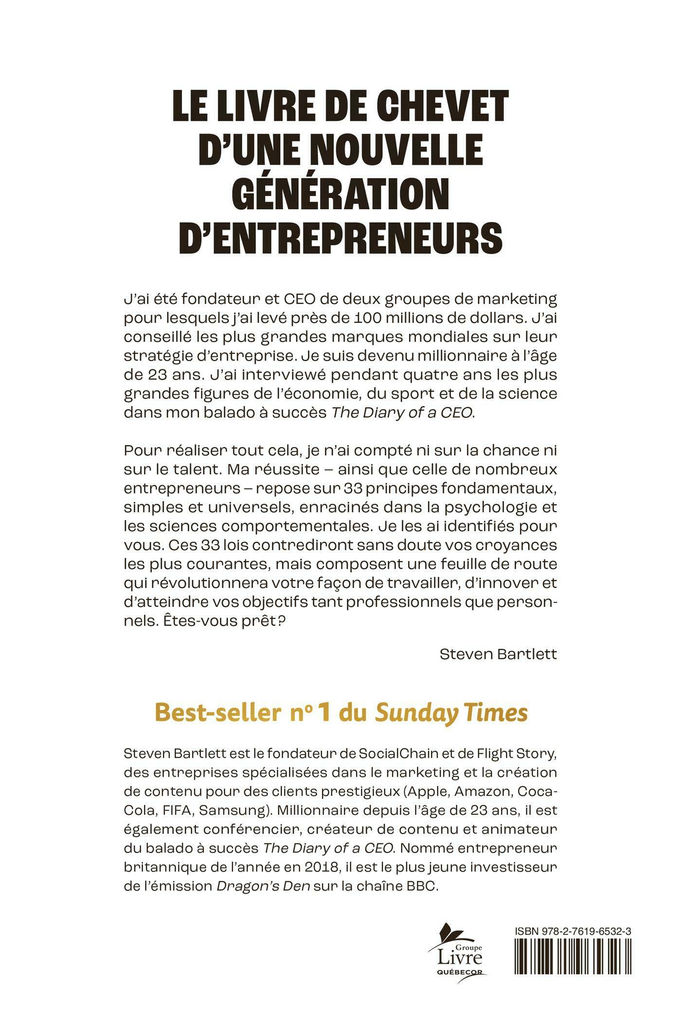 Ces 33 lois contrediront sans doute vos croyances les plus courantes, mais composent une feuille de route qui révolutionnera votre façon de travailler, d'innover et d'atteindre vos objectifs tant professionnels que personnels.