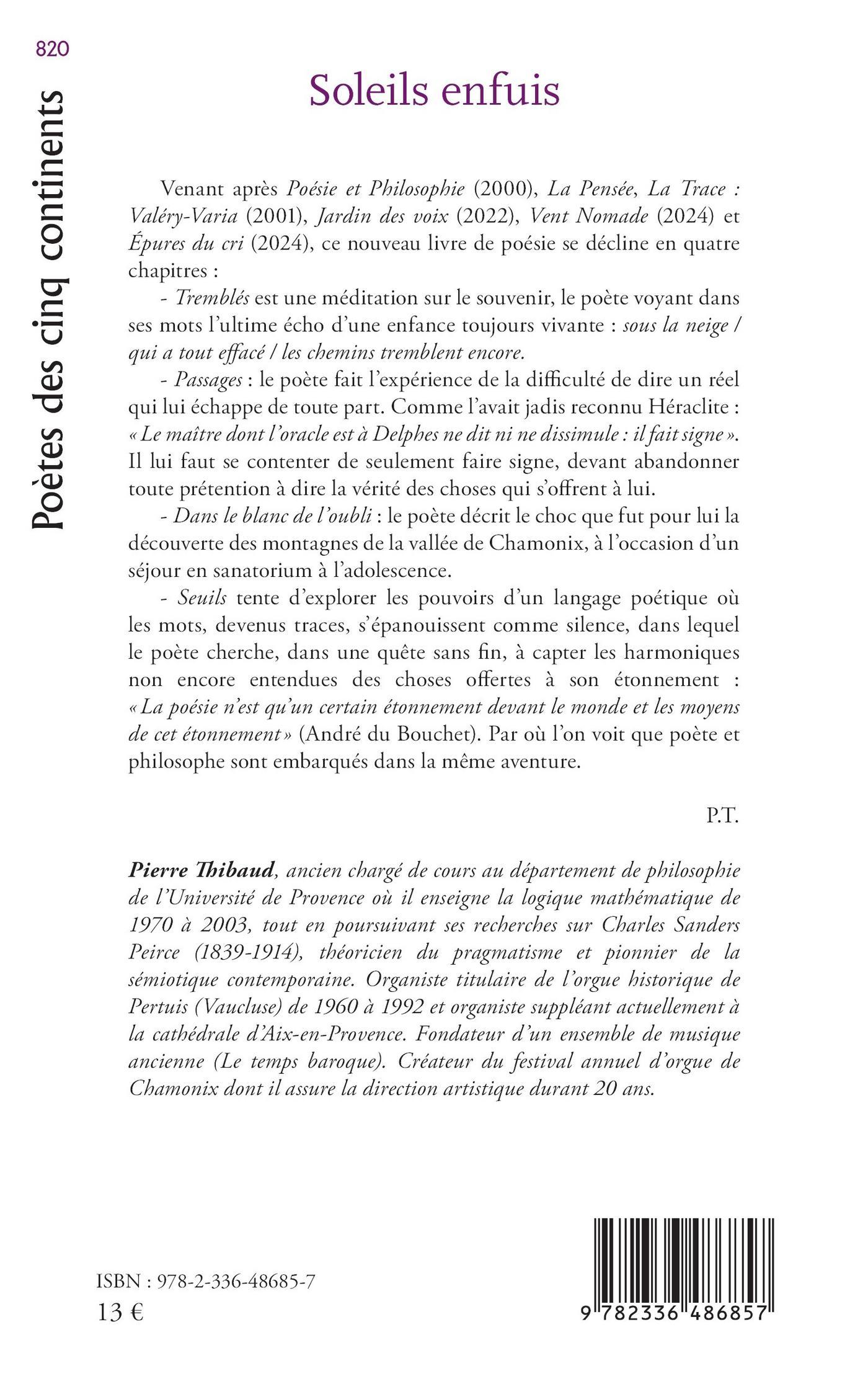 Venant après Poésie et Philosophie (2000), La Pensée, La Trace : Valéry-Varia (2001), Jardin des voix (2022), Vent Nomade (2024) et Épures du cri (2024), ce nouveau livre de poésie se décline en quatre chapitres :